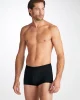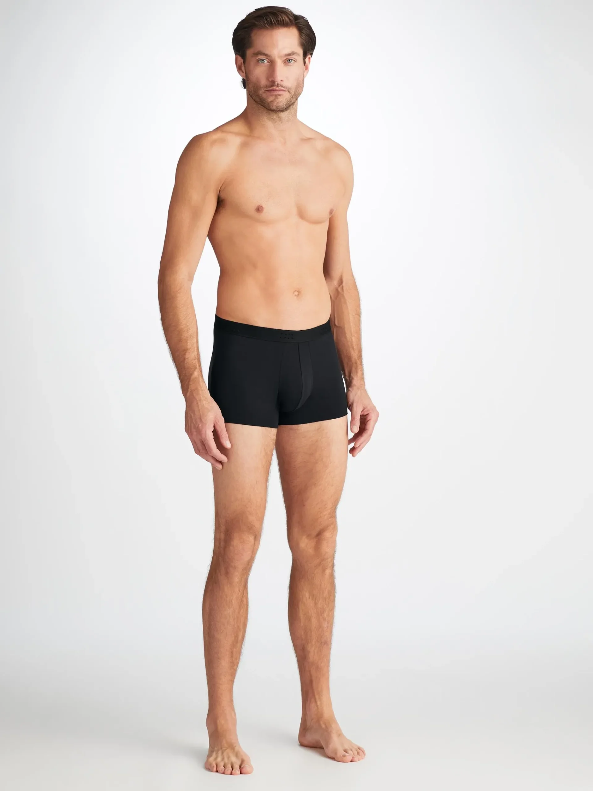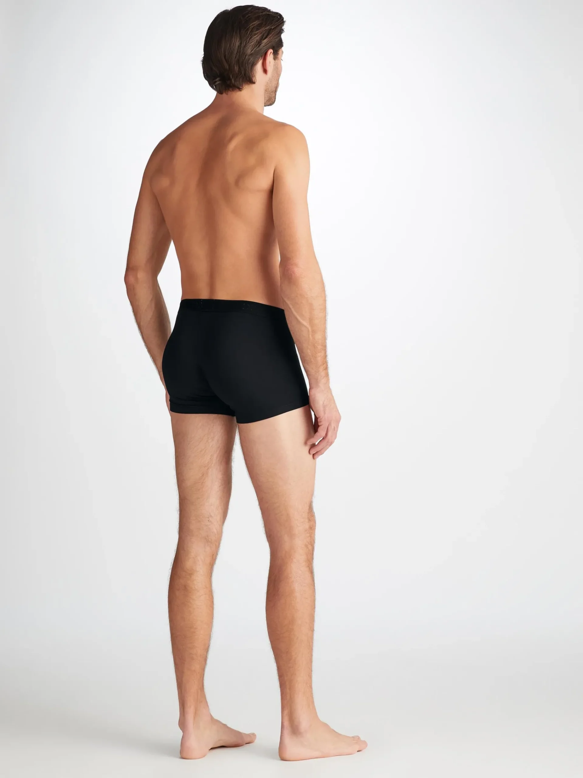 Our Alex boxer briefs in black are cut for a streamlined, classic look with a fitted shape, closed front and a shorter leg. A fabric-covered waistband provides gentle skin contact.