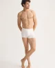 Our Alex boxer briefs in white are cut for a streamlined, classic look with a fitted shape, closed front and a shorter leg. A fabric-covered waistband provides gentle skin contact.