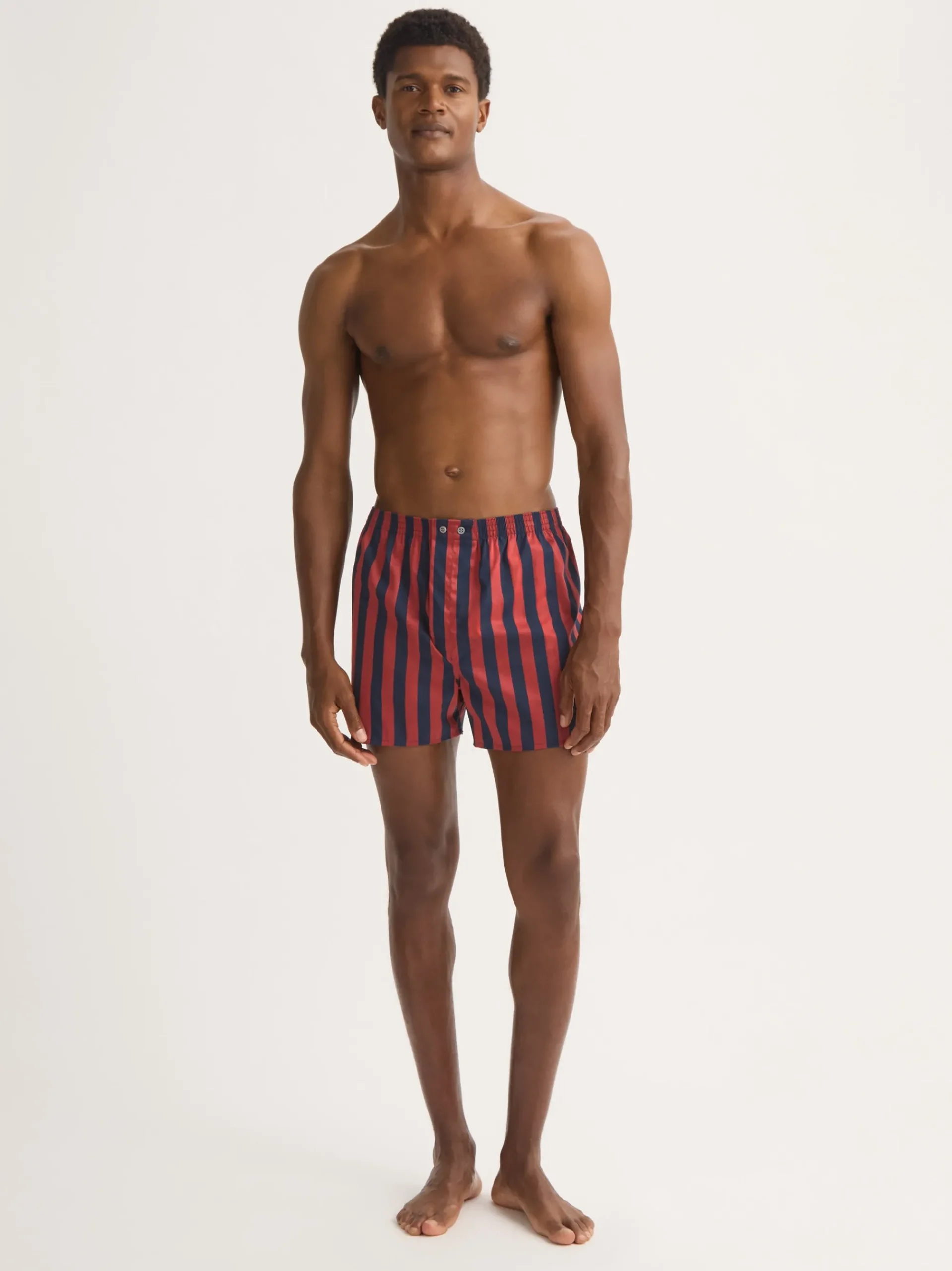 Timeless and refined, our Royal Cotton boxers in navy and red stripe bring a touch of luxury to everyday essentials. Cut from our signature pure cotton, the fabric is lightweight, breathable, and supremely soft — keeping you cool and comfortable all year round.