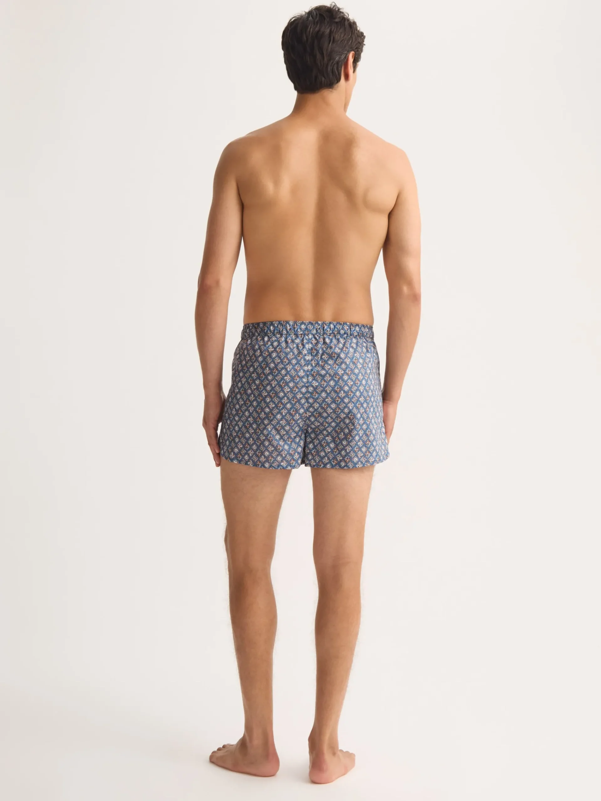 Marking our centennial, these multicolour blue boxer shorts feature a geometric diamond motif print — a playful, energetic take on a timeless symbol of celebration.