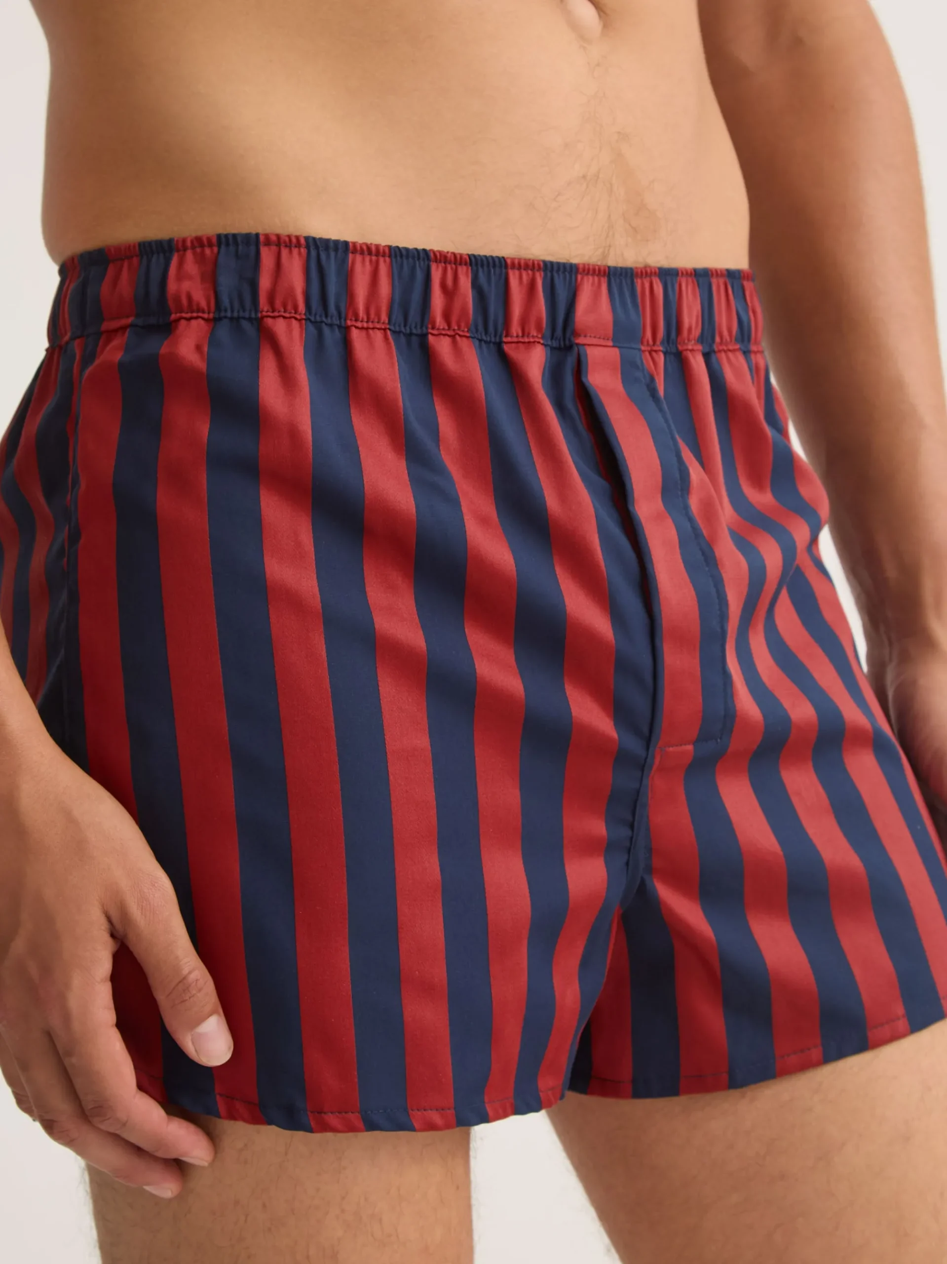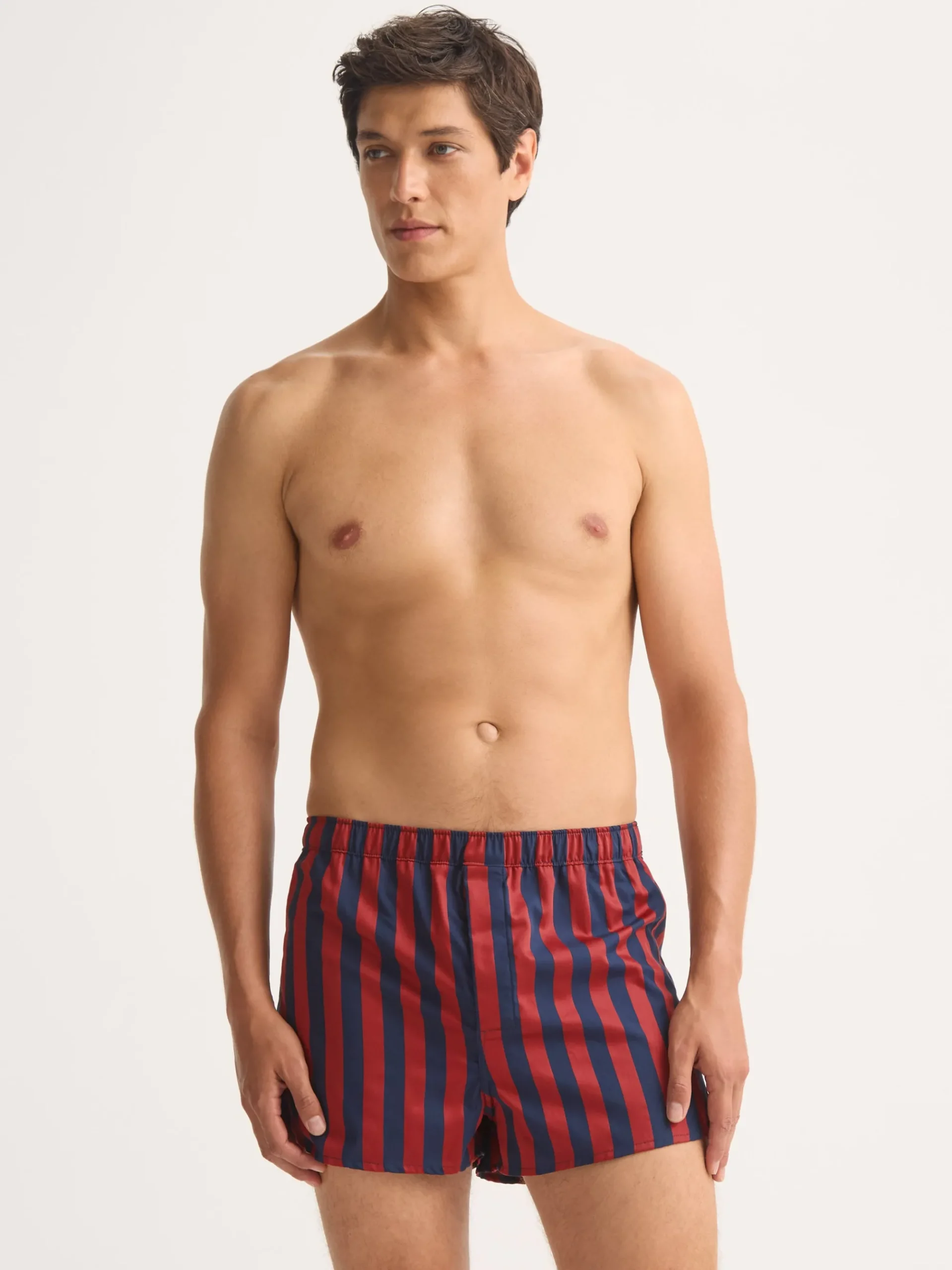 Crafted from pure cotton with subtle satin stripes in navy and red, our Royal Cotton modern fit boxers offer a refined update to a timeless essential. Lightweight, breathable, and luxuriously soft, they deliver all-day comfort with an effortlessly polished look.