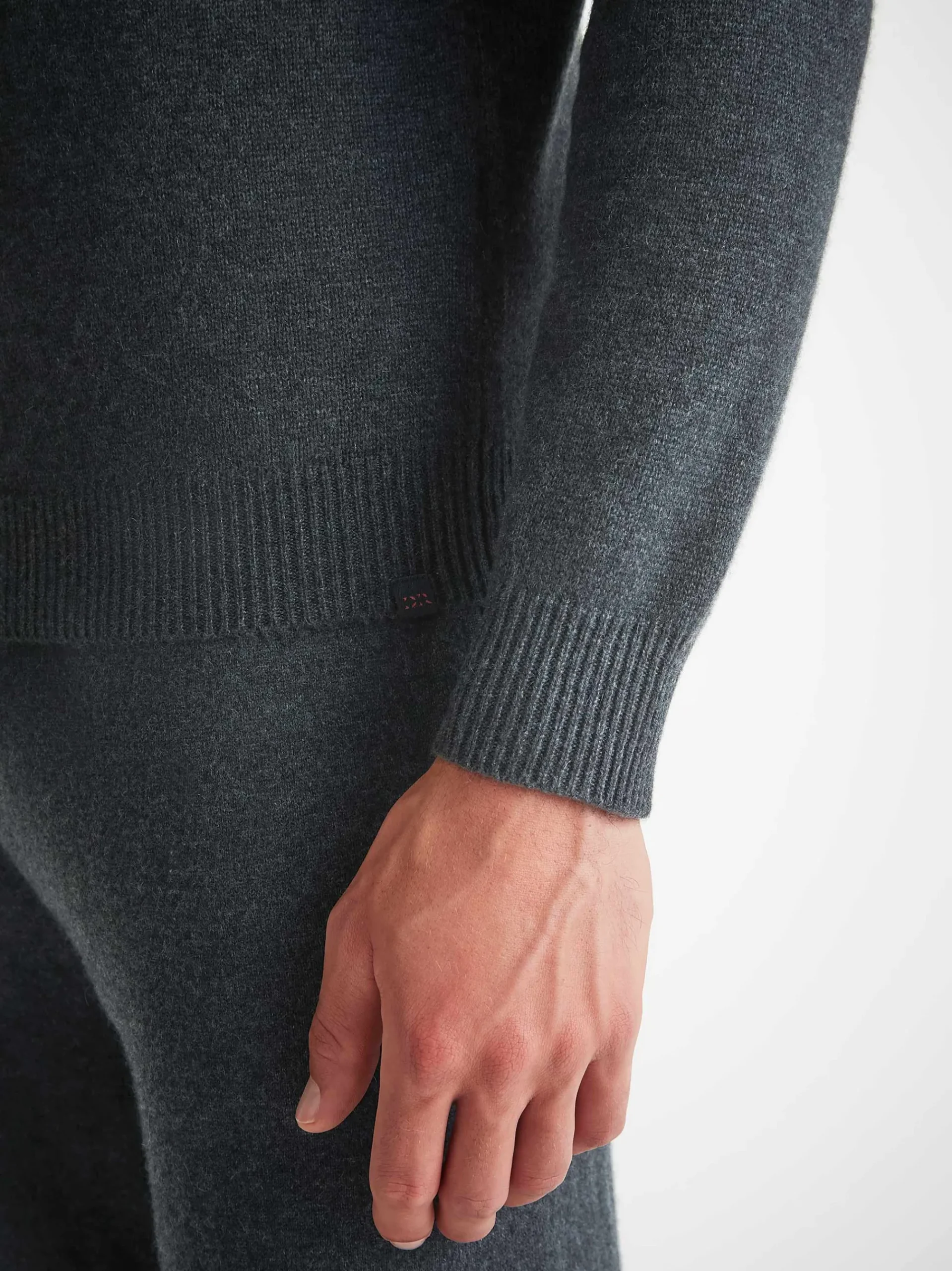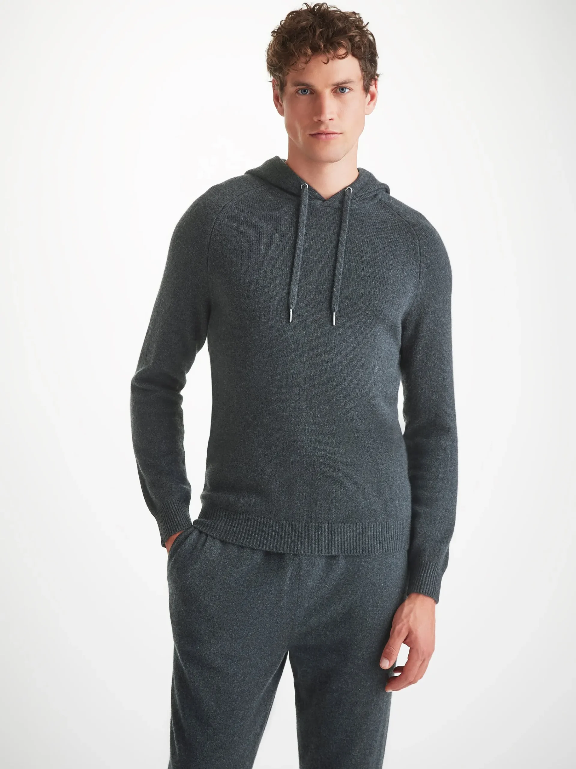 With its elasticated waist, drawstring tie and slip-in side pockets, the aim was to create a garment that looks effortlessly chic but is still as comfortable to slip into as a favourite tracksuit. Our Finley men’s cashmere track pants in charcoal grey have a gradual taper to the leg and a ribbed waistband and ankle cuffs, for a relaxed yet stylish fit.