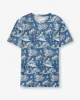 We have focused on uniting beautiful, inspirational designs with our market-leading technical approach for our resortwear range. Featuring our blue island hopping print; a modern interpretation of a toile du jouy. Filled with tropical trees and plant life, it features a tropical bird flying in between islands.