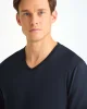 Created in a casual relaxed fit, the v-neckline features a bound collar with detailed ribbing. We have chosen to print our label inside of the neckline for optimal comfort.