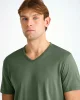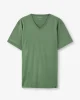Created in a casual relaxed fit, the v-neckline features a bound collar with detailed ribbing. We have chosen to print our label inside of the neckline for optimal comfort.