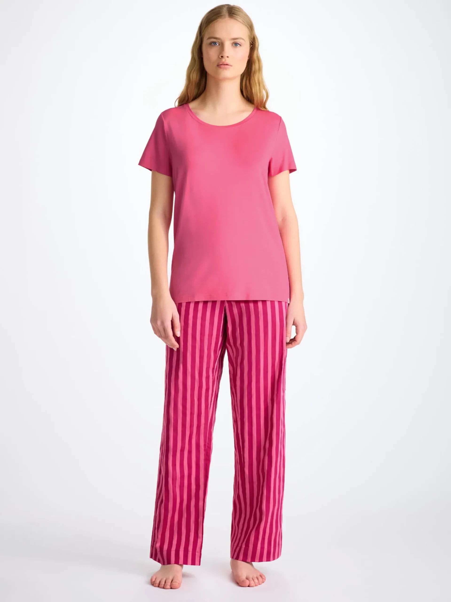 Our new women’s flamingo pink toned leisure t-shirt is an effortlessly chic sport-luxe essential.