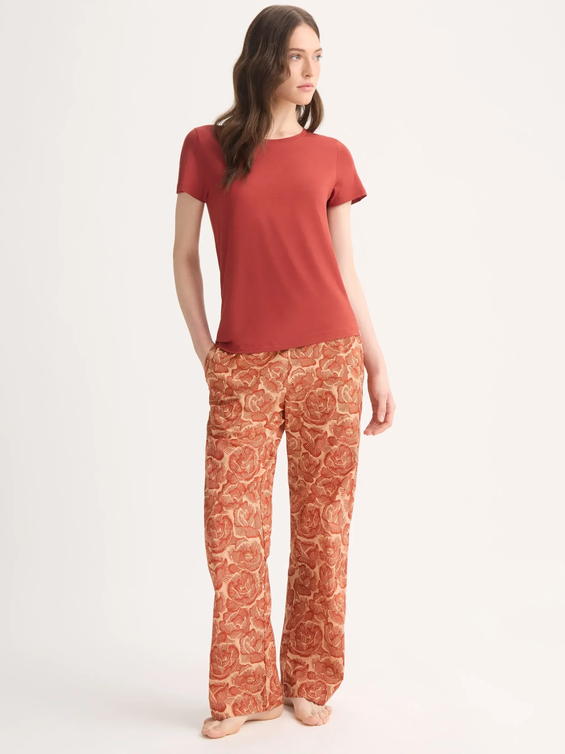 Soft, breathable and effortlessly comfortable, the women’s Lara t-shirt in rose red is a wardrobe favourite that transitions seamlessly from daywear to nighttime. With its classic crew neckline and gently flattering modern silhouette, it’s a versatile piece that works beautifully on its own, layered under a blazer, or with matching pyjamas.