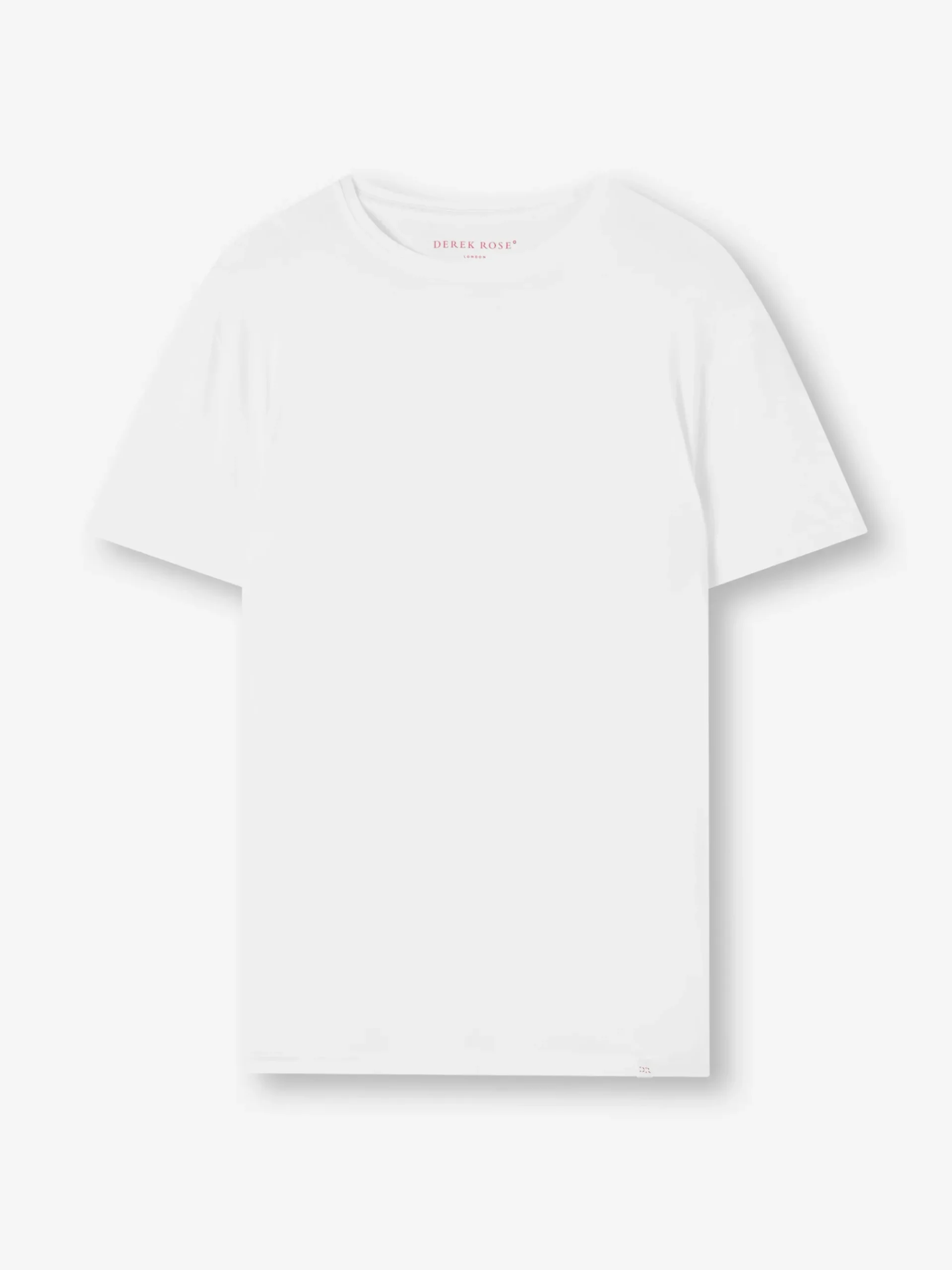 Our Basel menβs T-shirt in white brings crisp simplicity together with exceptional softness. Cut from our stretch micro modal, it offers a smooth, breathable feel that makes it a natural choice for sleeping, lounging or travelling in comfort.