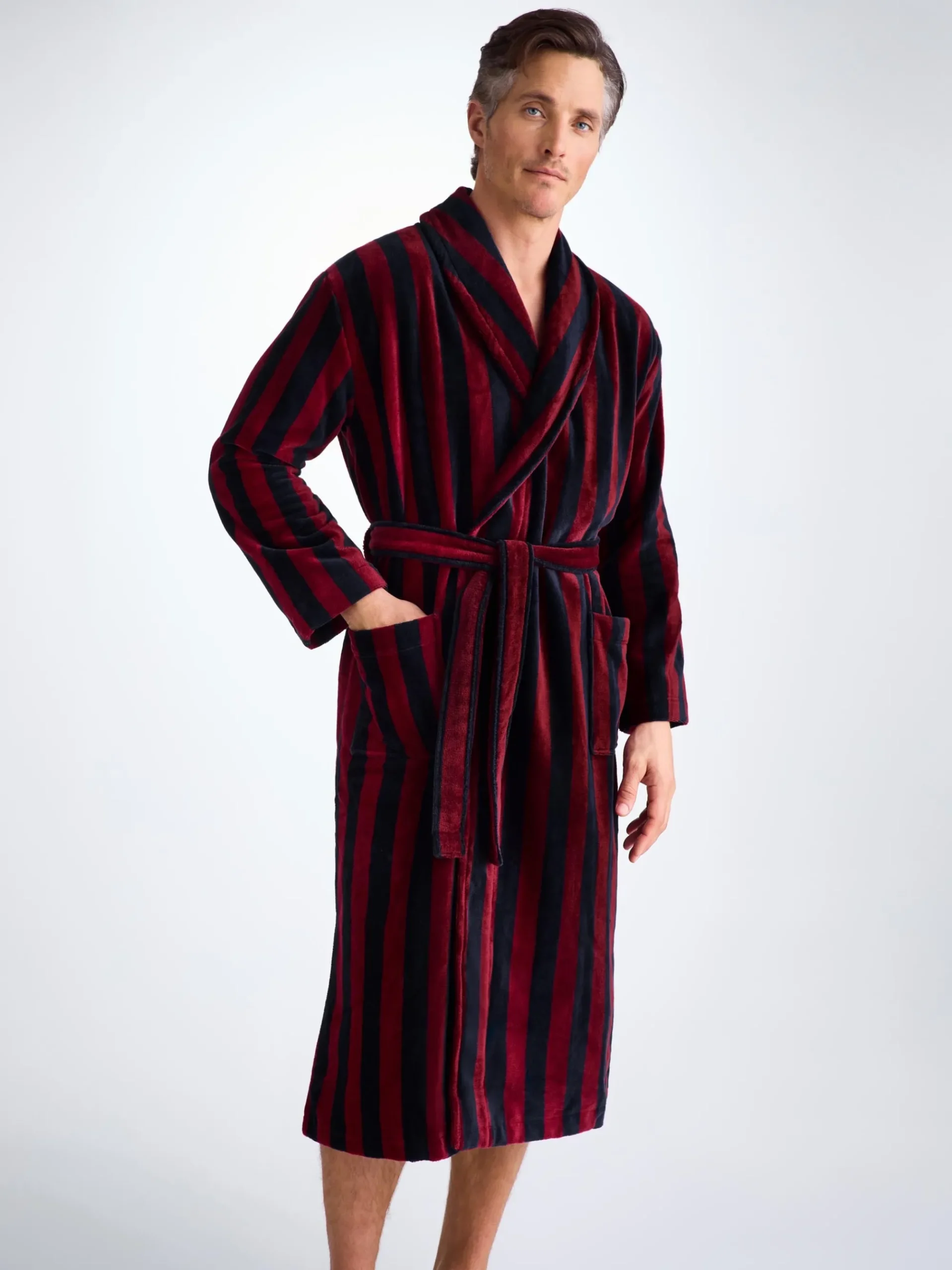 Our Aston bathrobe is a customer favourite, it features a classic shawl collar and two side pockets for practicality while around the house. It’s fastened with a fabric tie belt for the perfect relaxed fit.