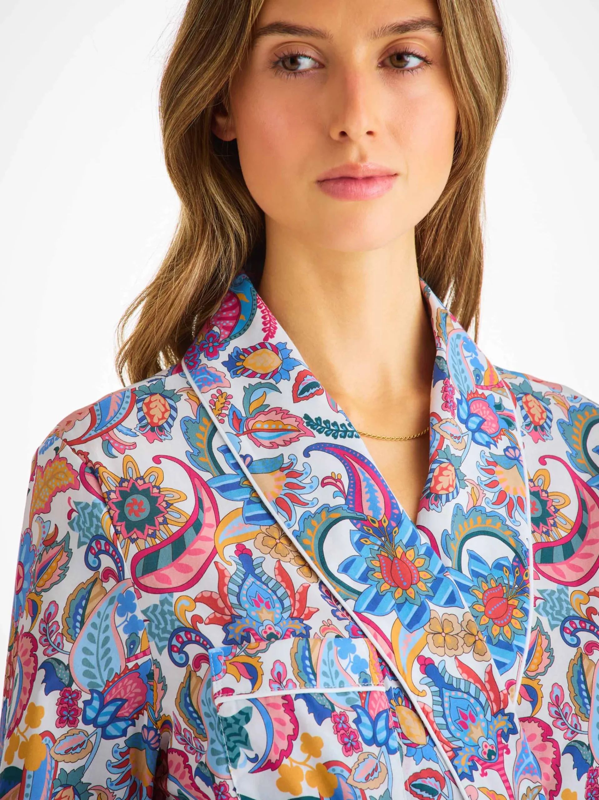 Our cotton batiste has become a firm favourite of our customers, thanks to its breathability, lightweight properties and luxuriously soft feel. With its stylish jungle paisley print, this gown is the perfect choice for breakfast at home or for weekends away with loved ones.