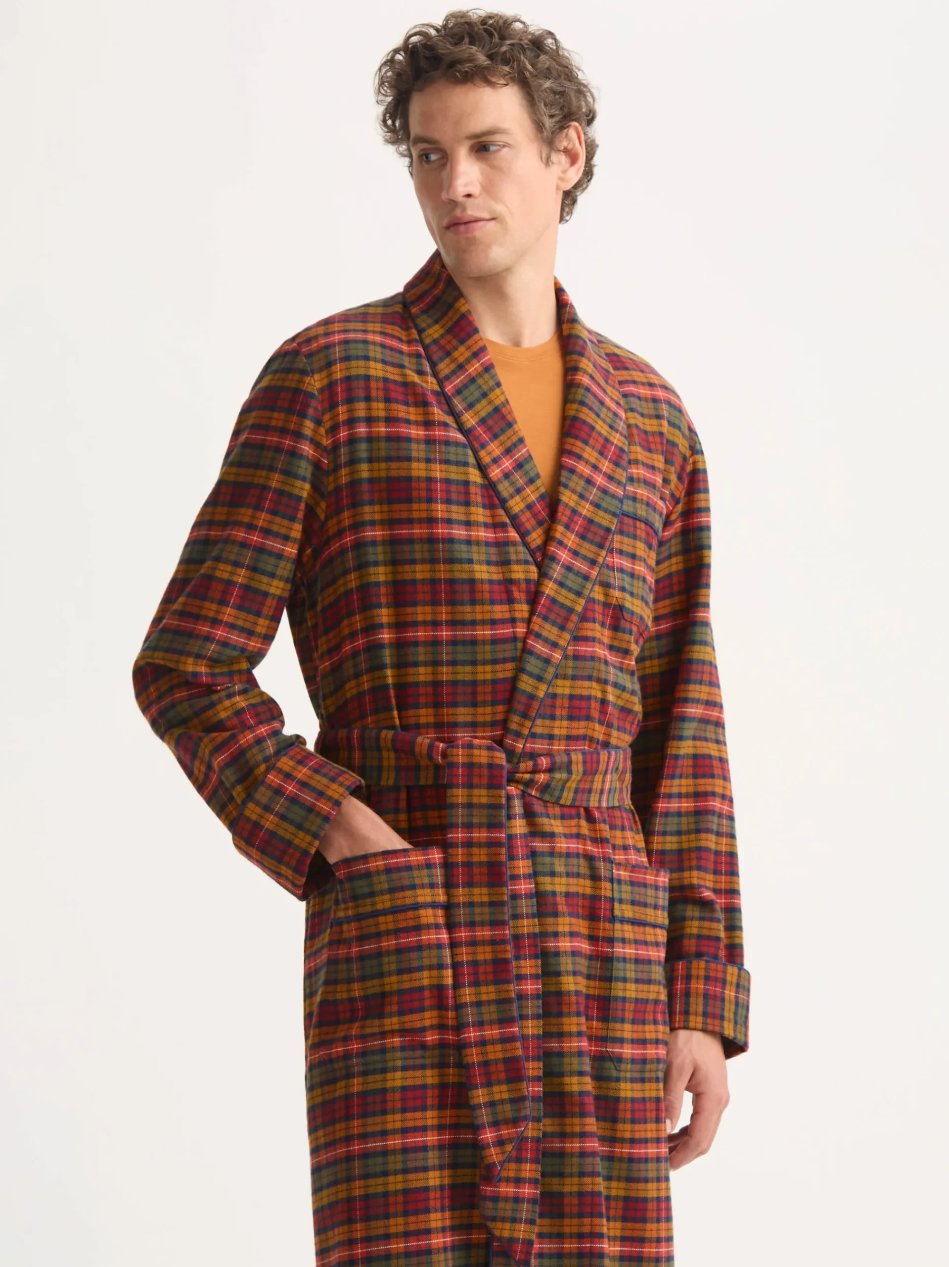 The men’s Kelburn Multicolour Check is a seasonal design featuring festive tones of red and gold, perfect for cosy winter evenings.