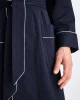 The gown is also complemented with white piping and a fabric tie waist belt for an added touch of luxe.