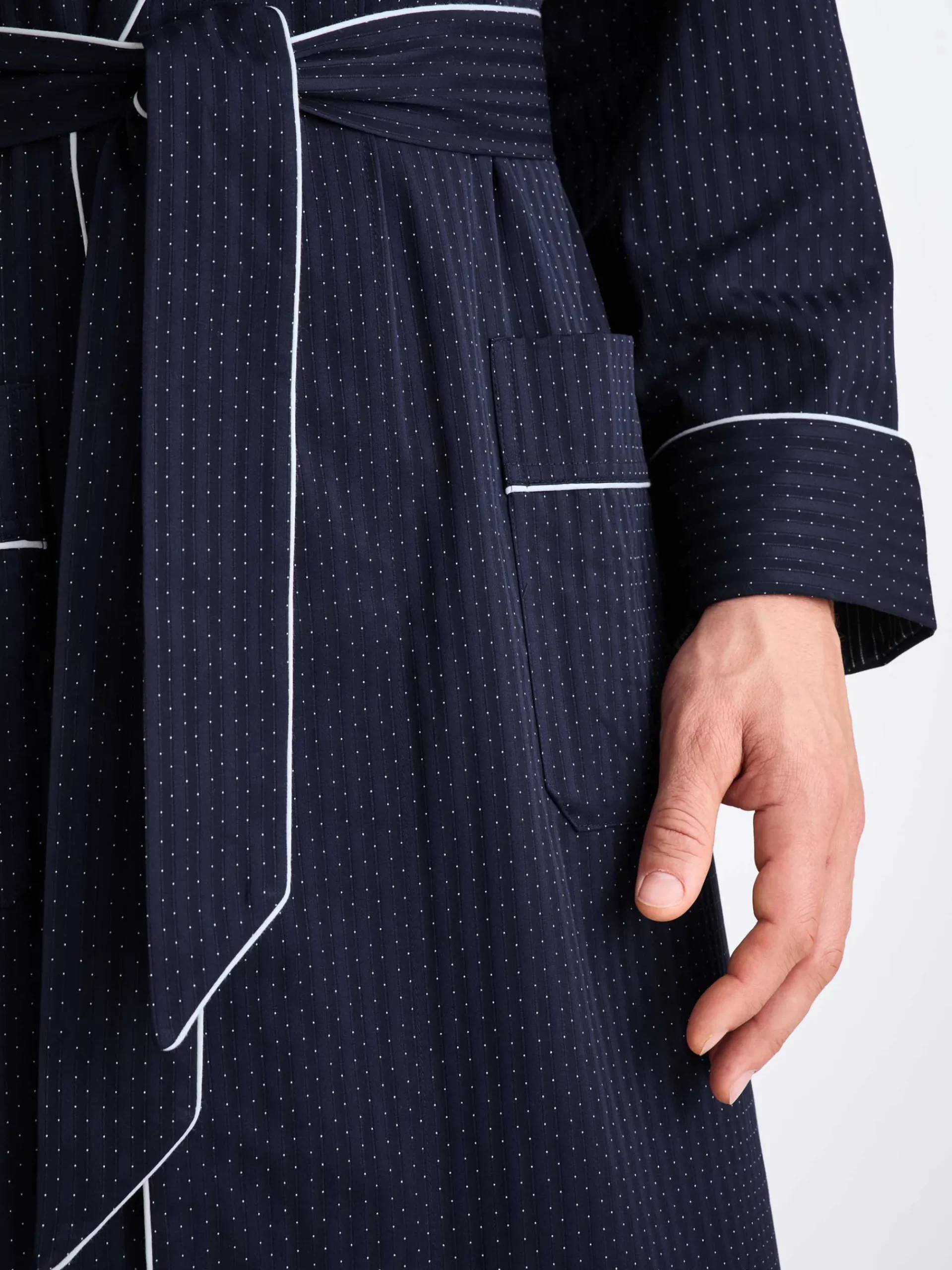 A free time essential, our Royal 40 dressing gown features a classic shawl collar design with a breast pocket and two front patch pockets for practicality while around the house.