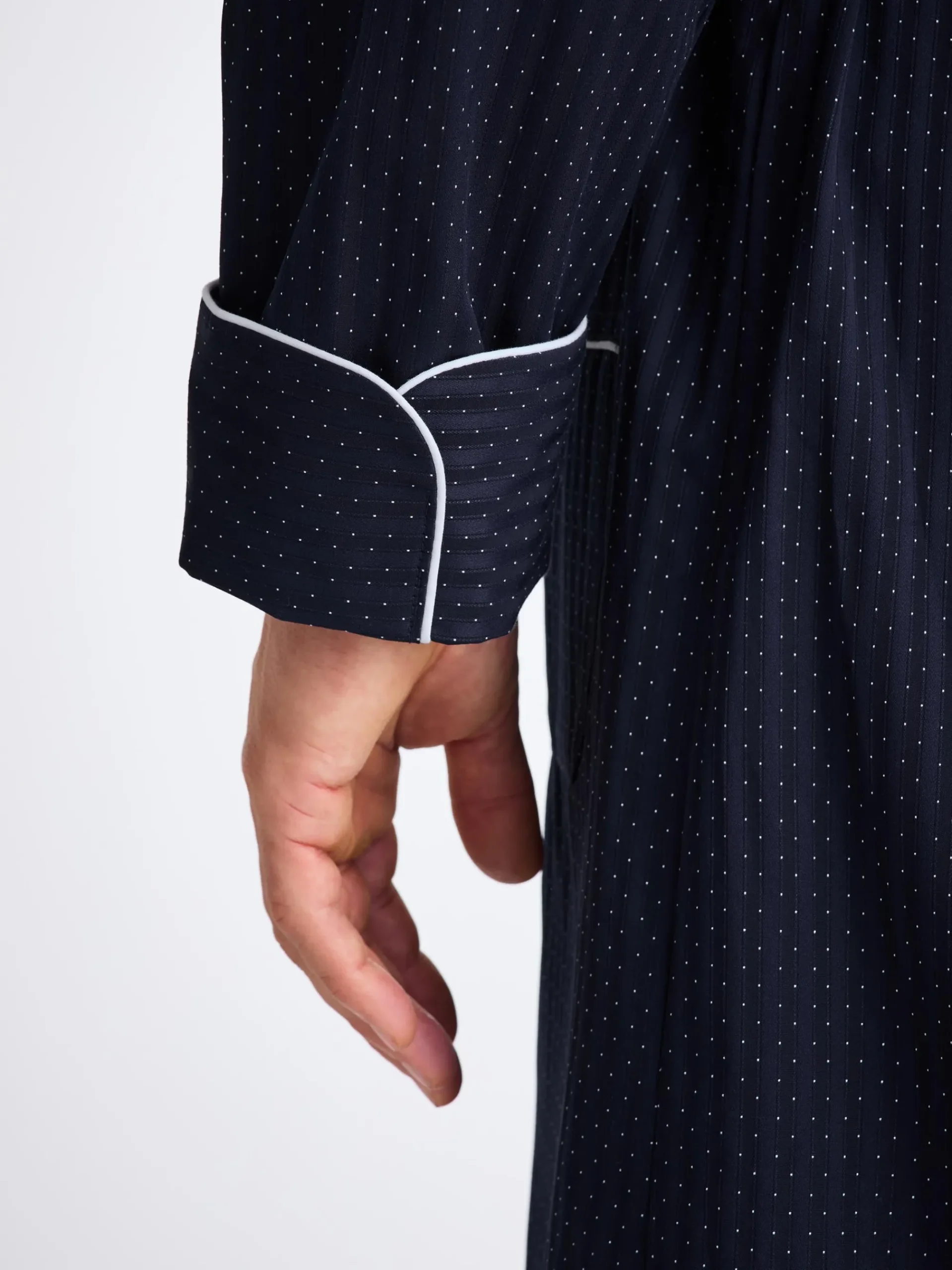 One of our best-sellers, the Royal 40 is a mid-weight 100% cotton with a luxury twofold yarn, woven with satin stripes and a polka dot design for luxurious comfort and softness.
