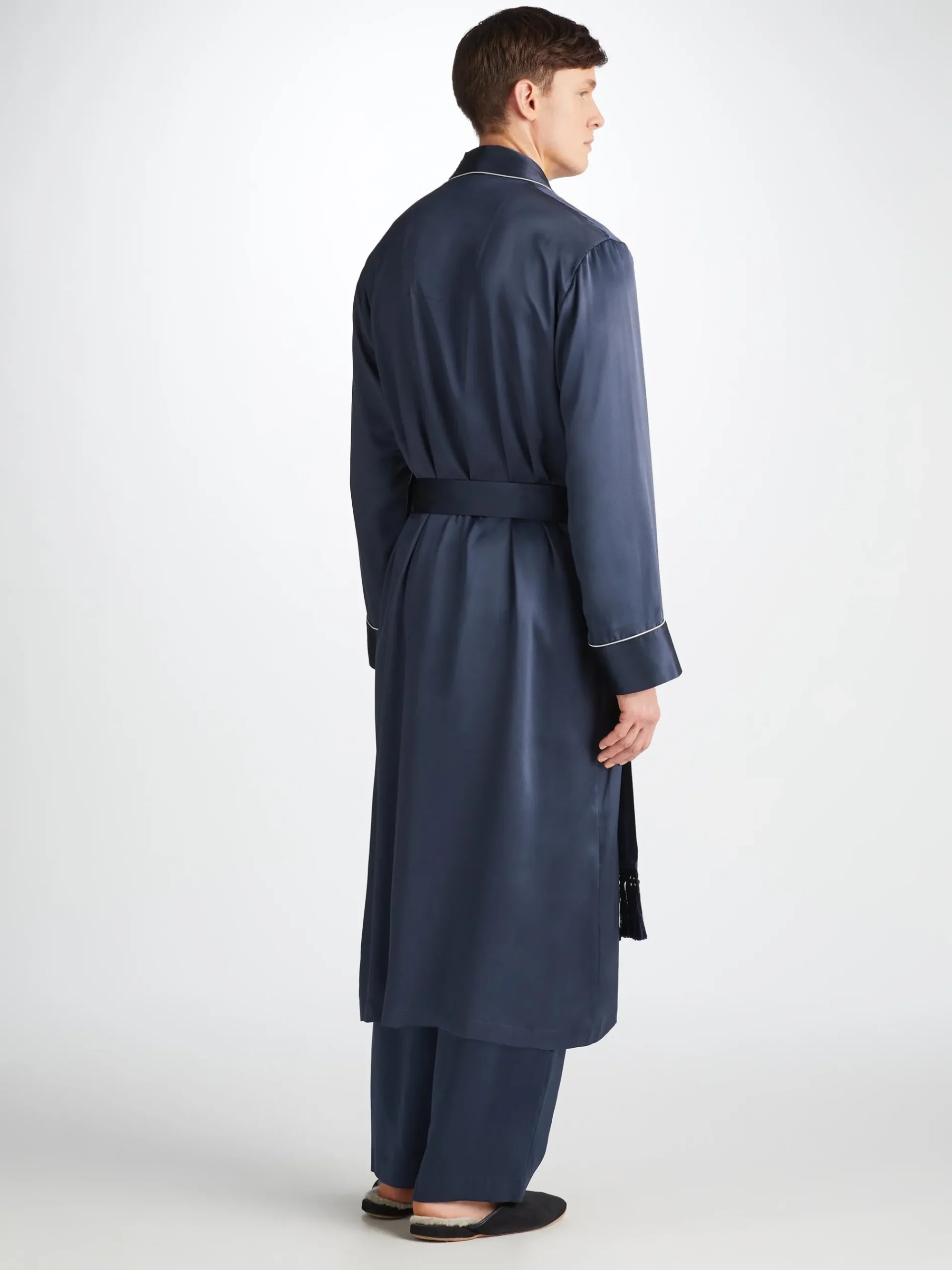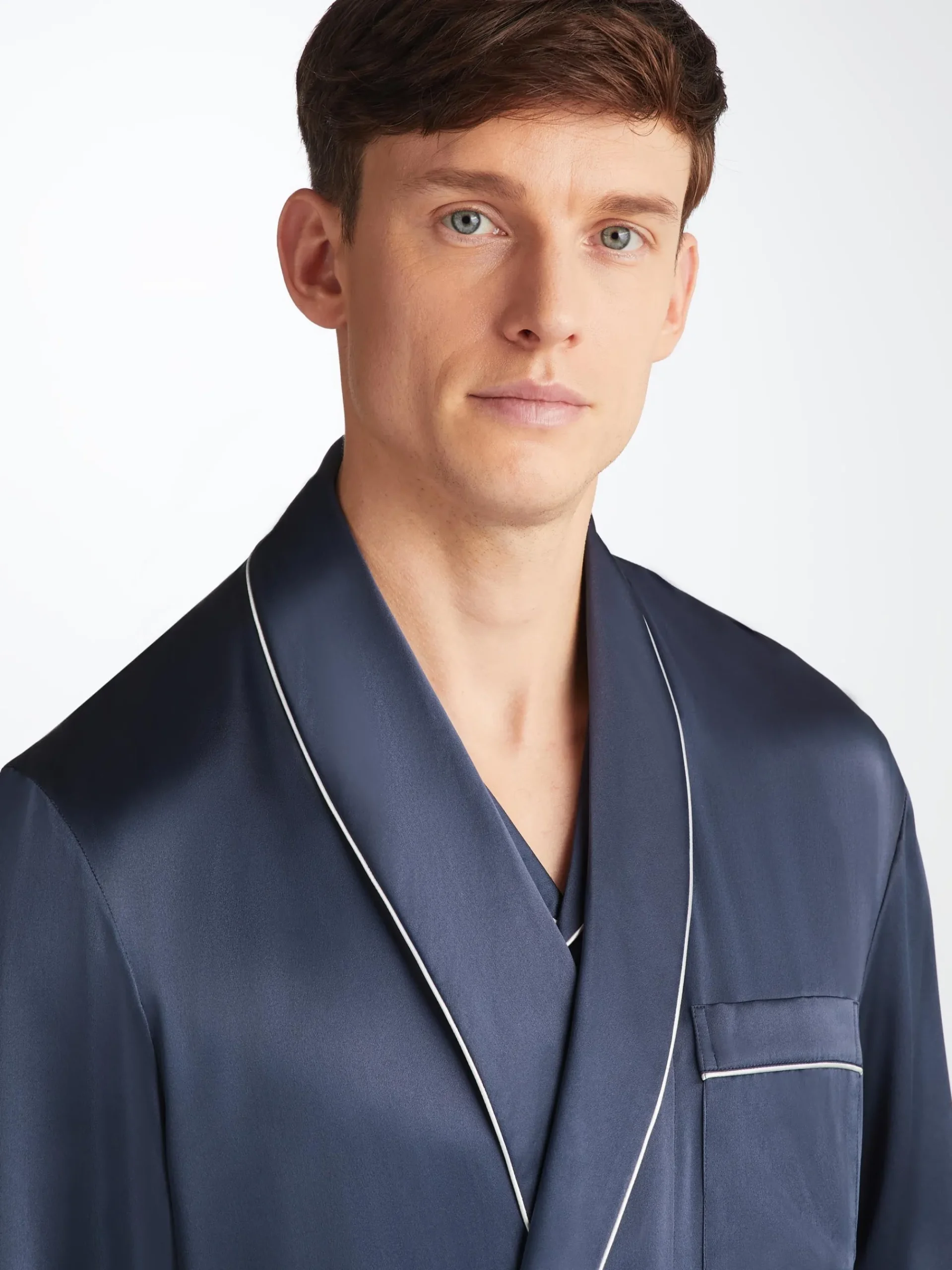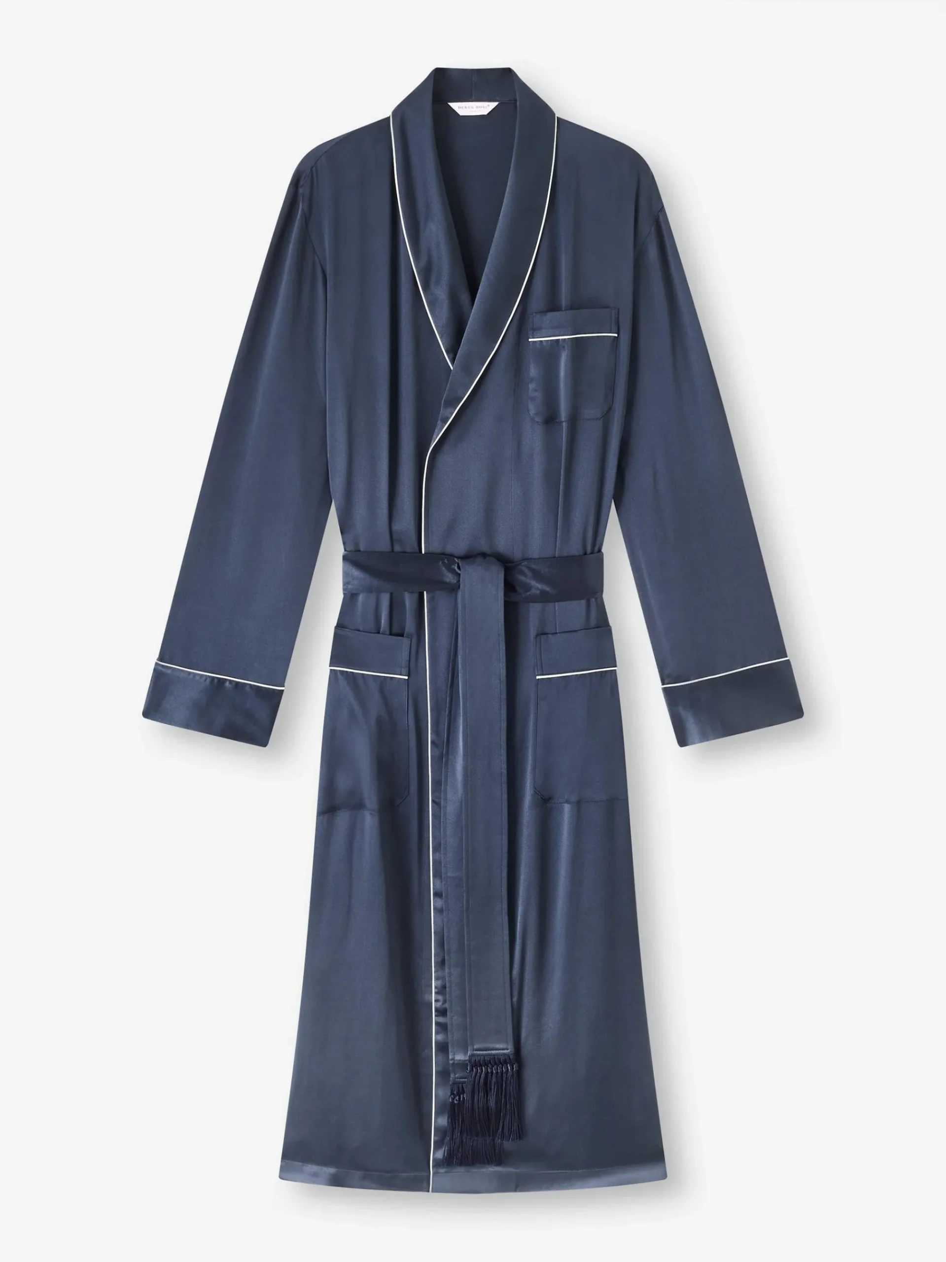 Crafted in our workshop in Cheshire, England, the Bailey navy tasselled belt dressing gown is produced in extremely limited quantities. The result of hours of loving craftwork by our skilled seamstresses, you’re sure to feel like royalty when relaxing at home in this silk robe.