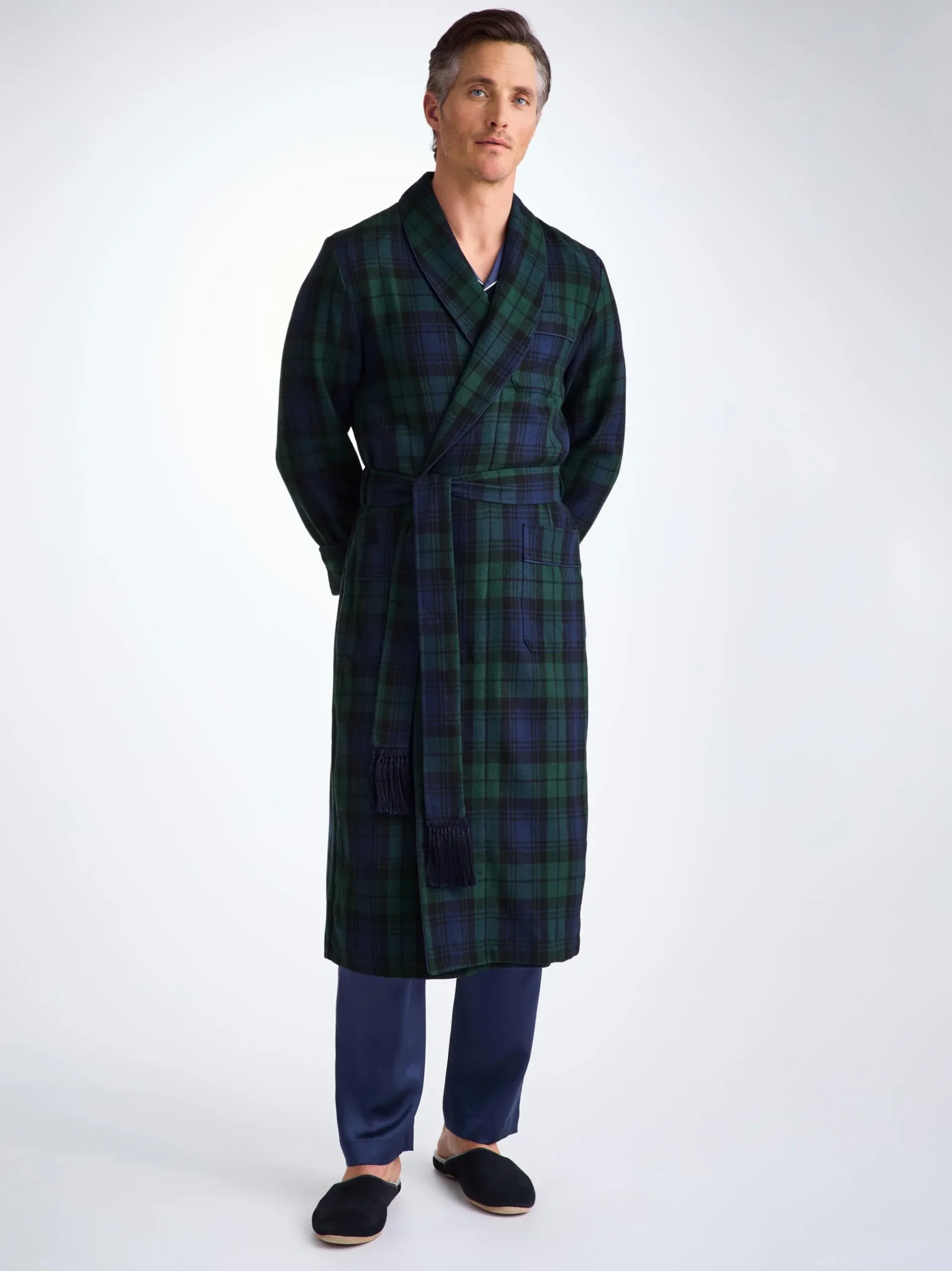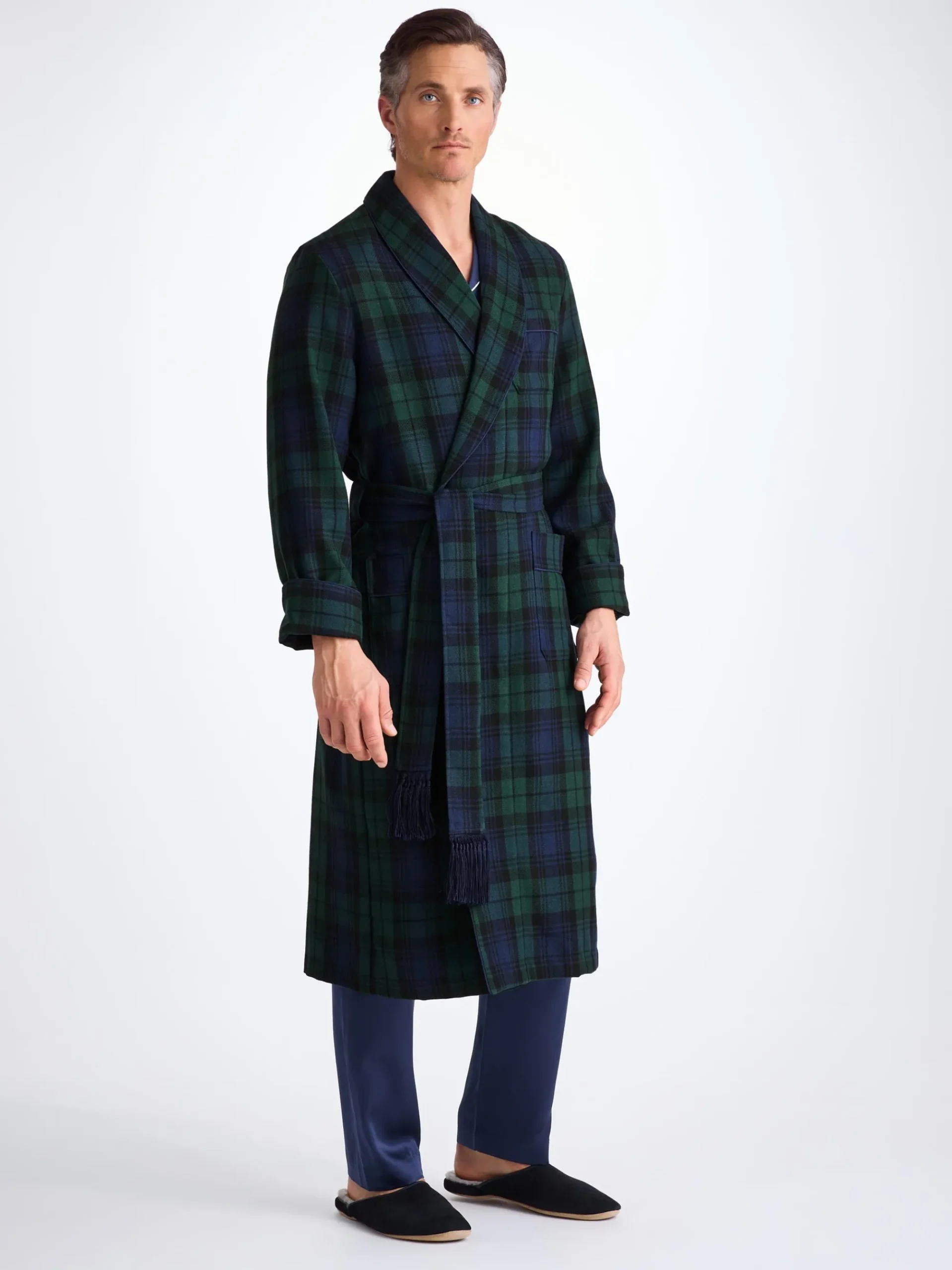 One of our best-selling dressing gowns, the tartan design showcases the colours of the Black Watch of the Royal Regiment of Scotland. Its rich, deep tones make for an elegant and timeless winter gown.