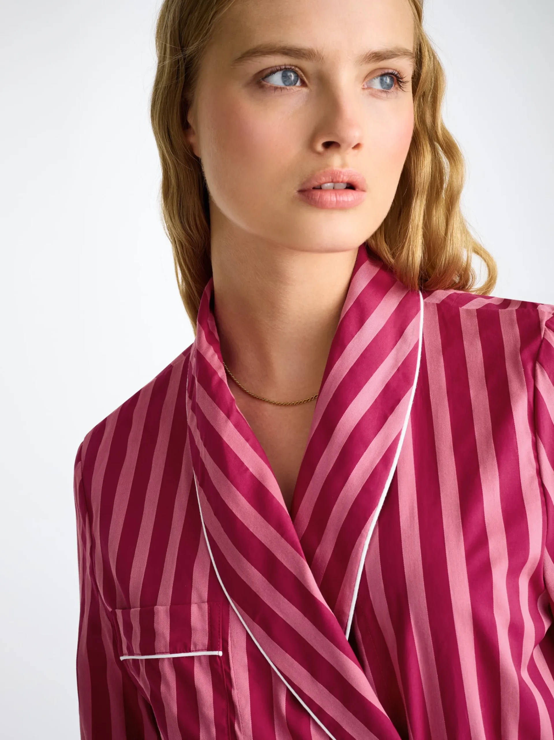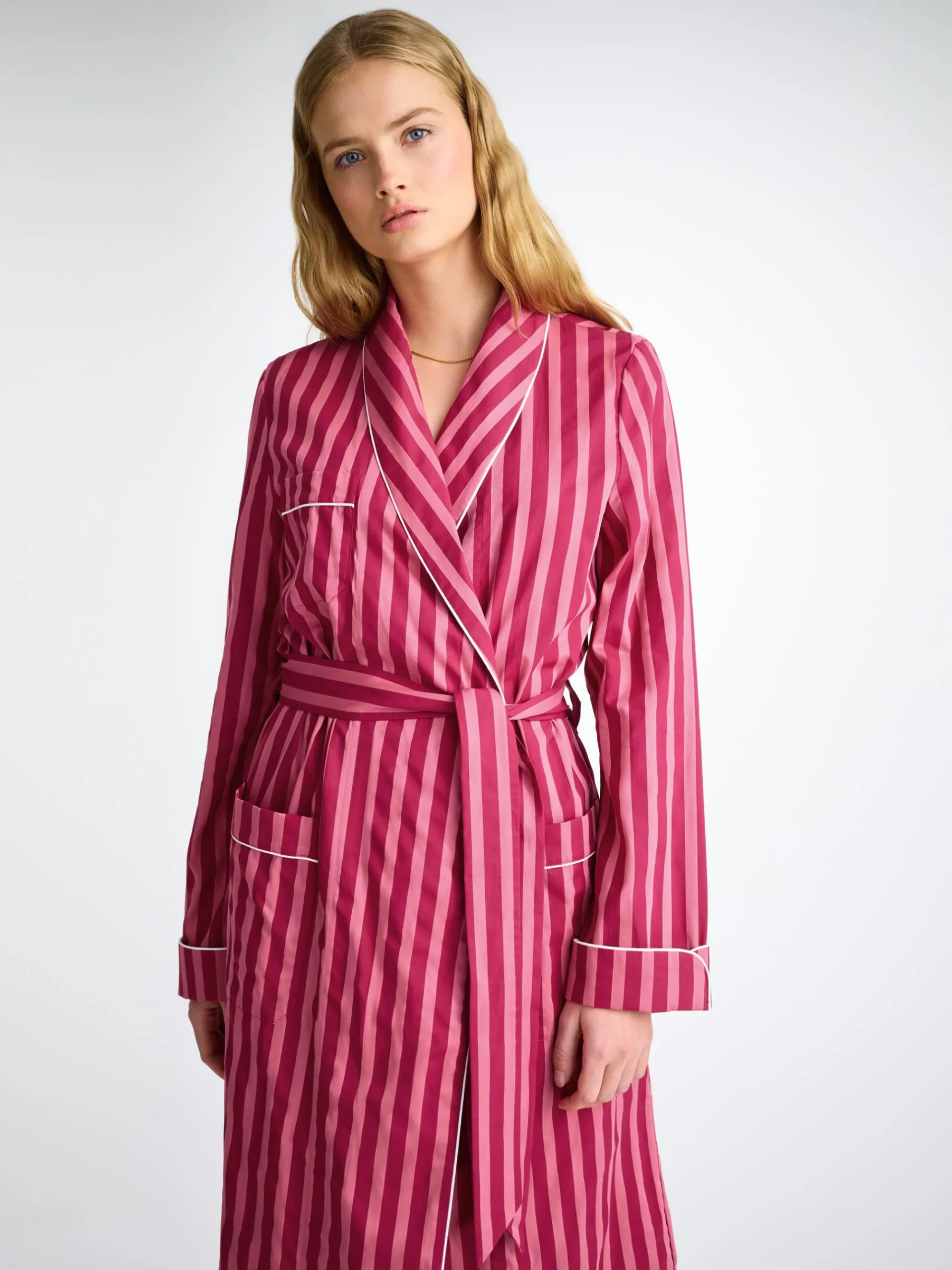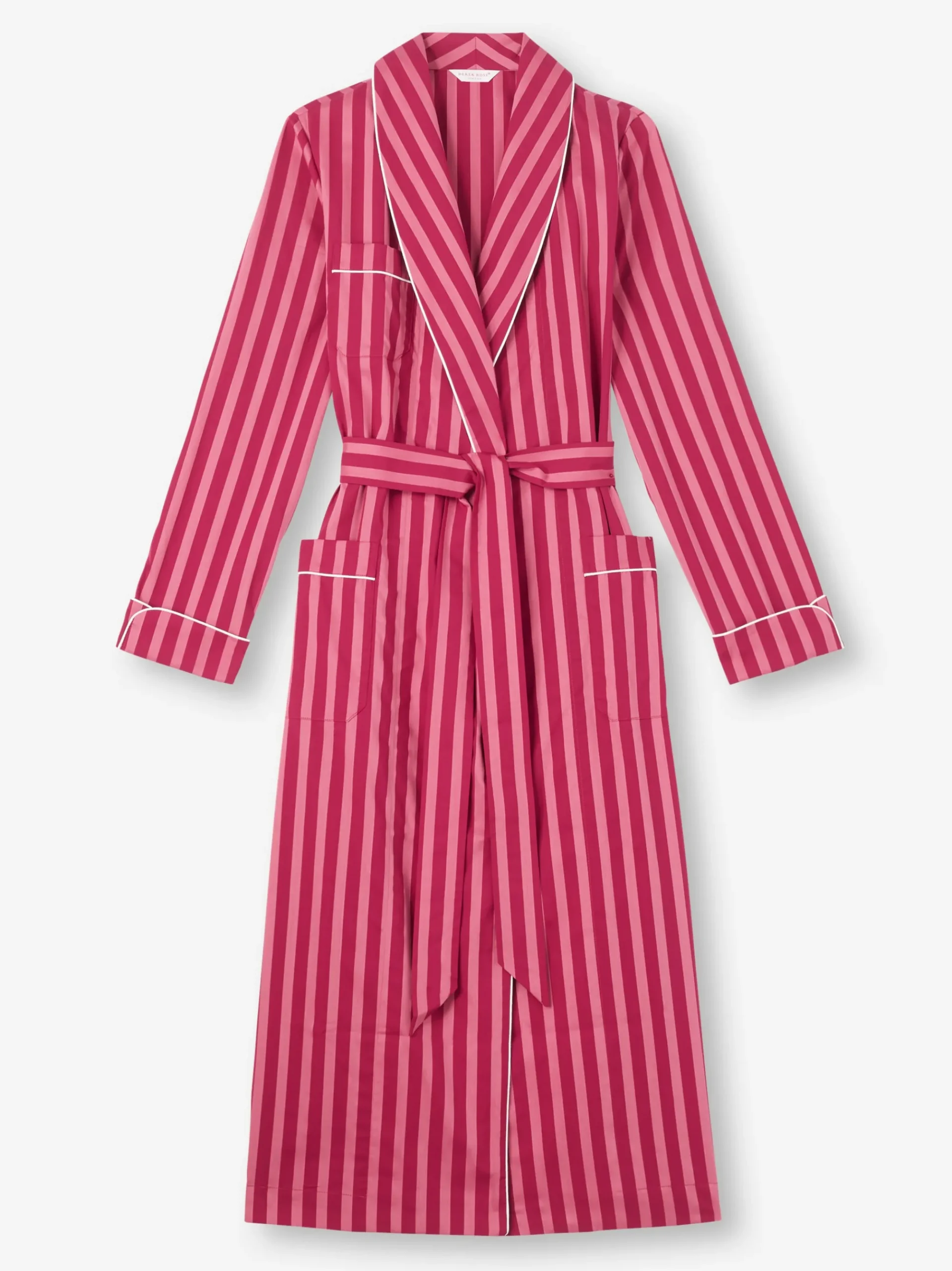 Our cotton batiste has become a firm favourite of our customers, thanks to its breathability, lightweight properties and luxuriously soft feel. With its stylish pink stripe, this gown is the perfect choice for breakfast at home or for weekends away with loved ones.