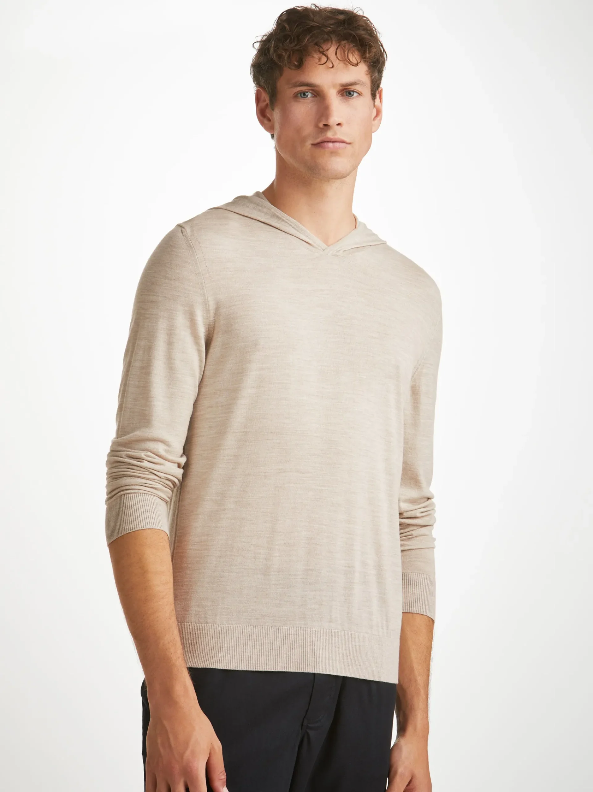 Designed with 100% merino wool, our Orson oat hoodie has been created with a ribbed neckline and cuffs as well as a practical hood.