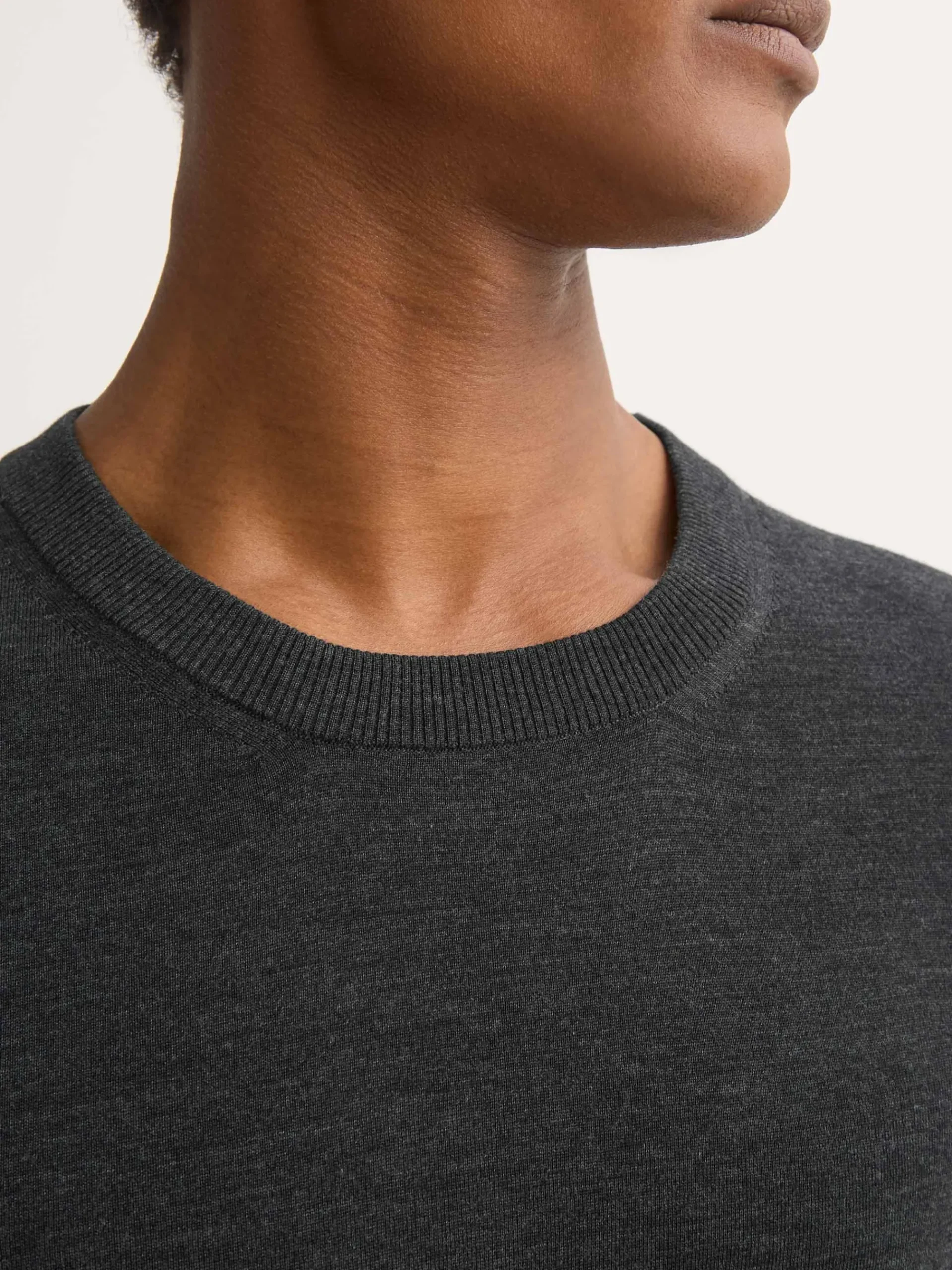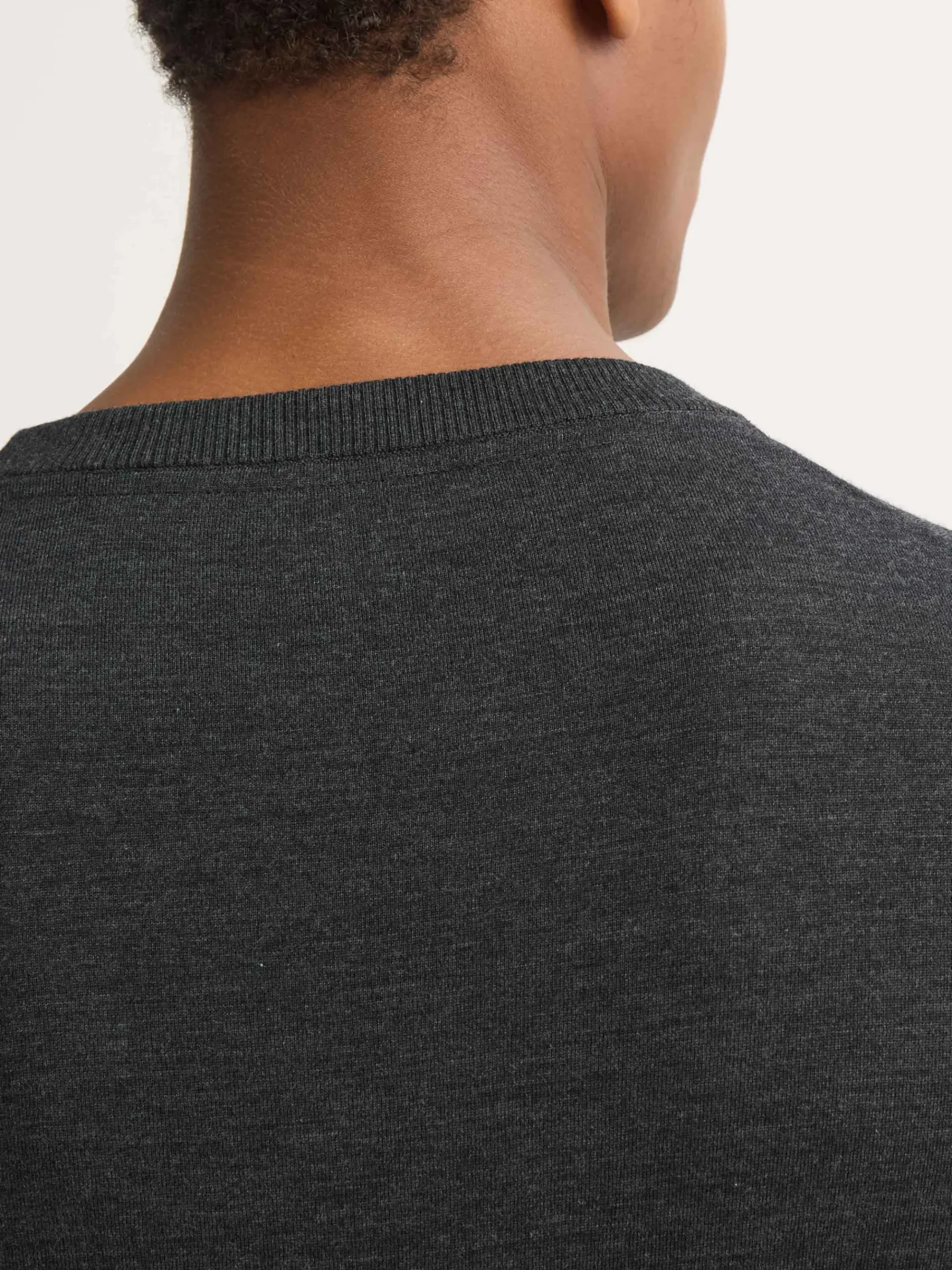 Designed with 100% merino wool, our Orson charcoal sweater has been created with a ribbed neckline and cuffs.