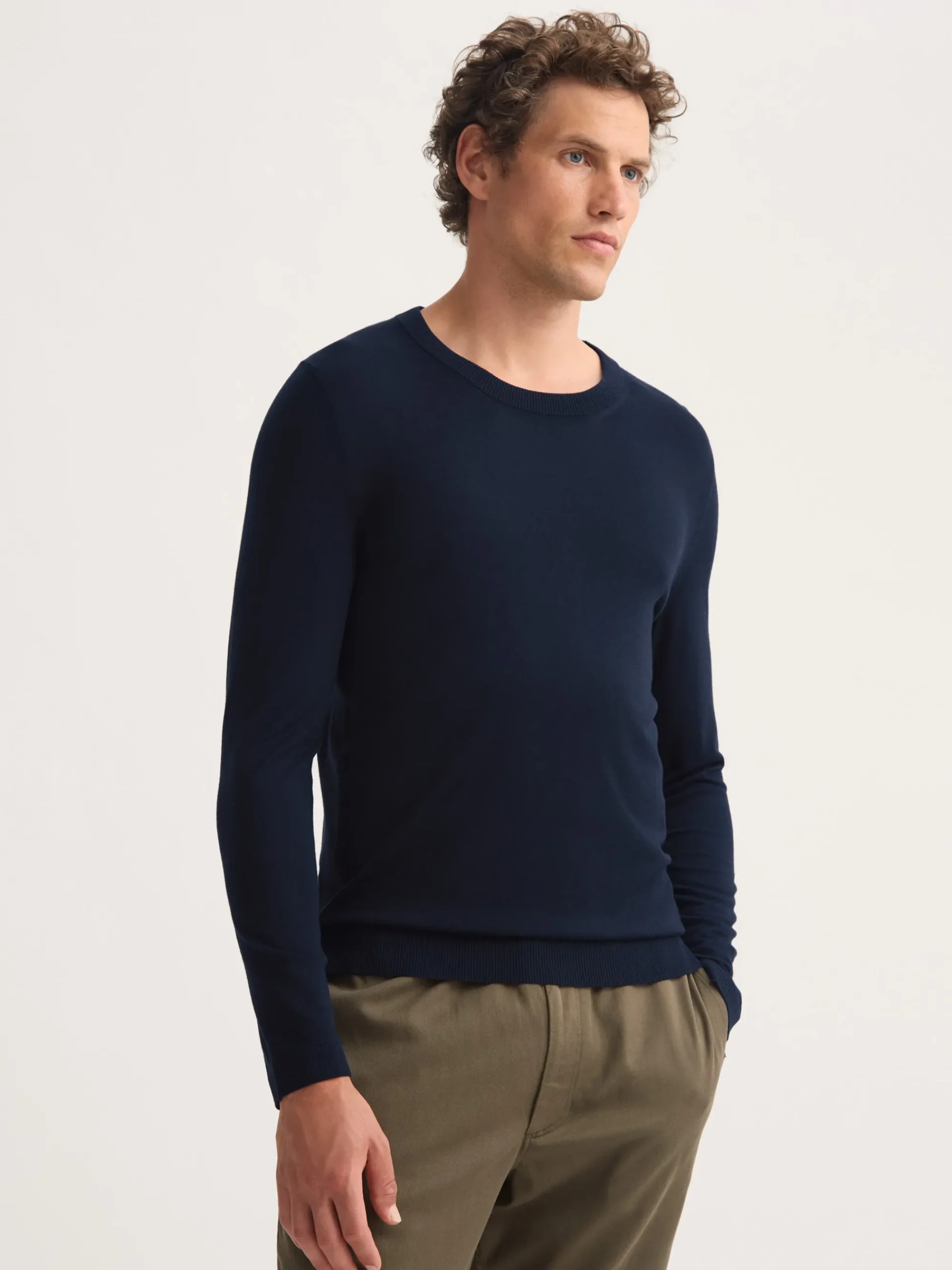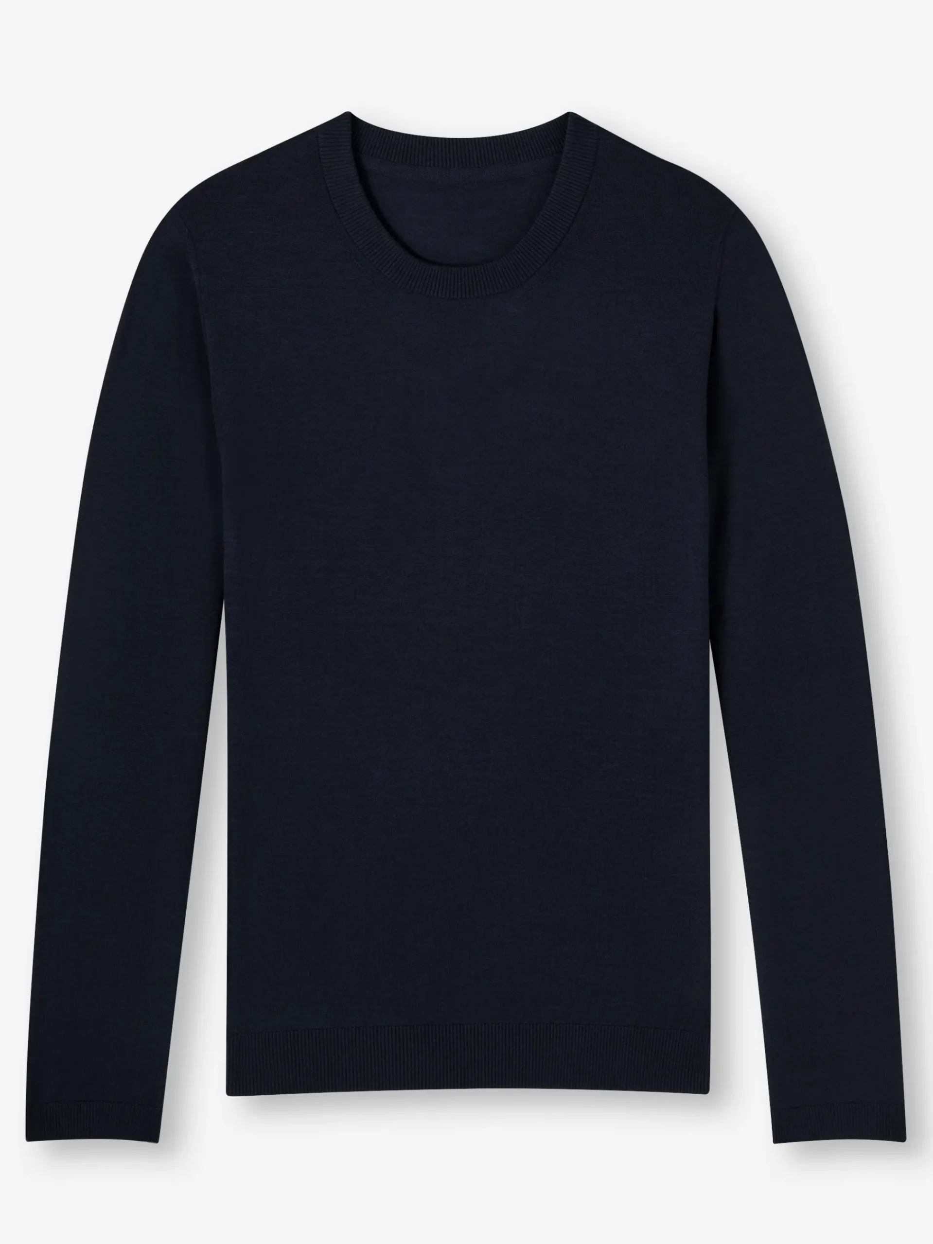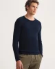 Designed with 100% merino wool, our Orson navy sweater has been created with a ribbed neckline and cuffs.