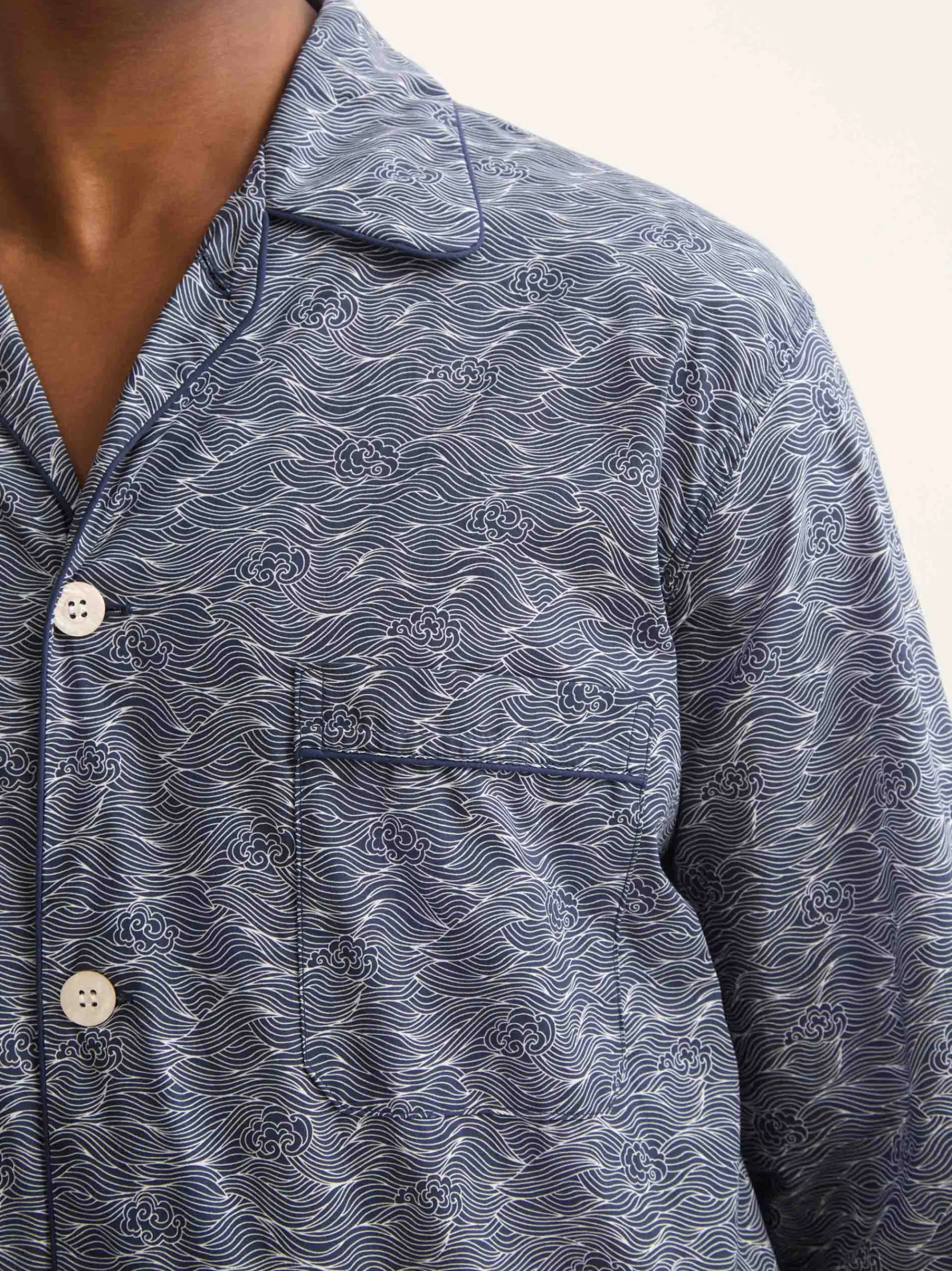 Designed in ultra-fine cotton batiste, these men’s classic fit pyjamas in a navy blue Night Sky print offer the ideal balance of comfort, breathability and timeless style. Lightweight and supremely soft, they are crafted to keep you comfortable throughout the night, whatever the season.