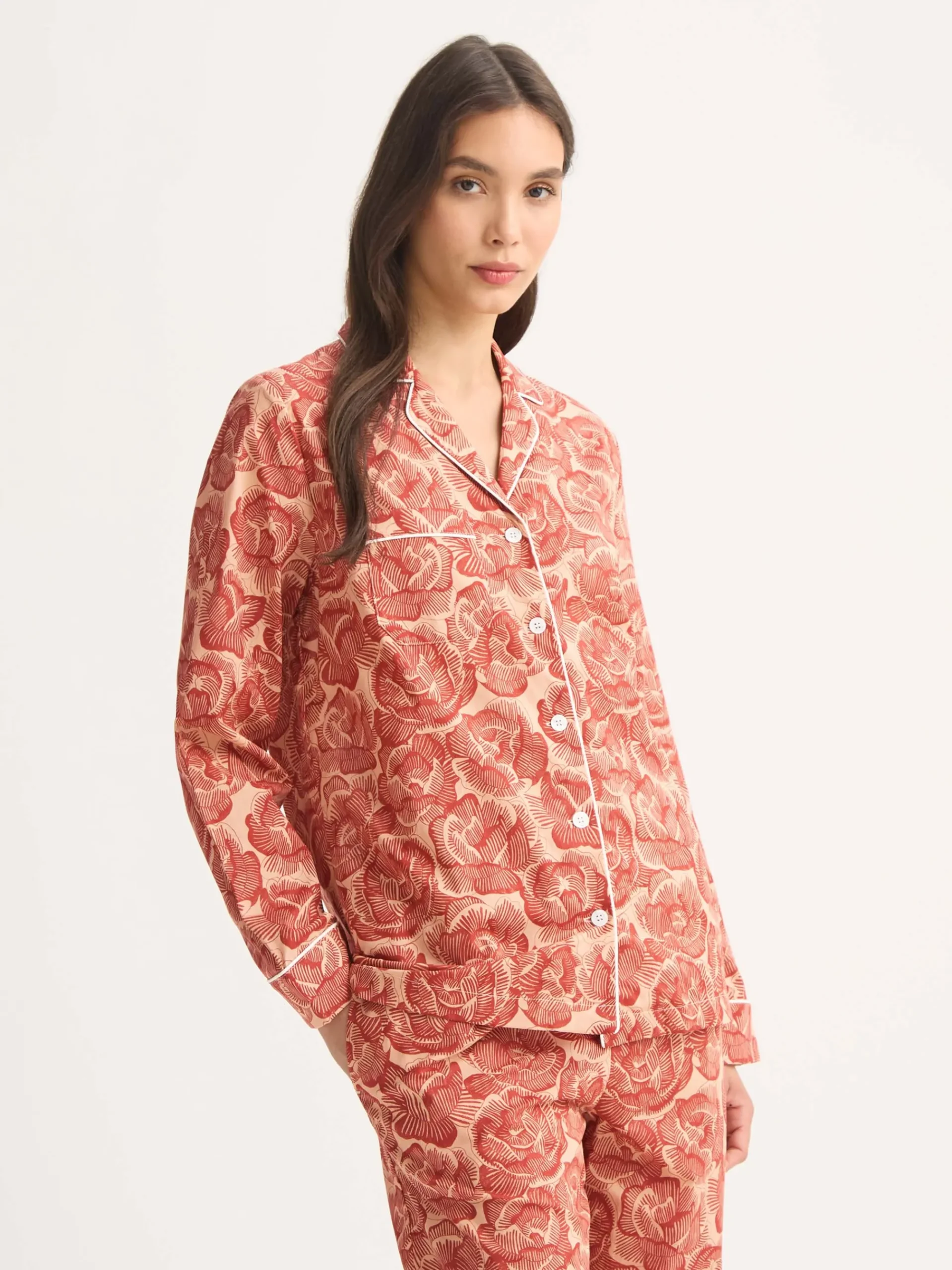 Inspired by the roseāan enduring symbol of Derek Roseāthis women’s rustic red pyjama set features a hand-drawn floral print, digitally rendered to preserve its original texture and detail. The two-tone colourway creates a refined play of pattern and negative space.