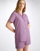 Cut with a flattering but relaxed shape, our women’s shortie pyjamas feature a short sleeve jacket top with a mitred corner chest pocket. The shorts have an elasticated and drawstring waist for practicality. The higher waist on the shorts creates a more natural fit and improved comfort, and the most important addition? Pockets!