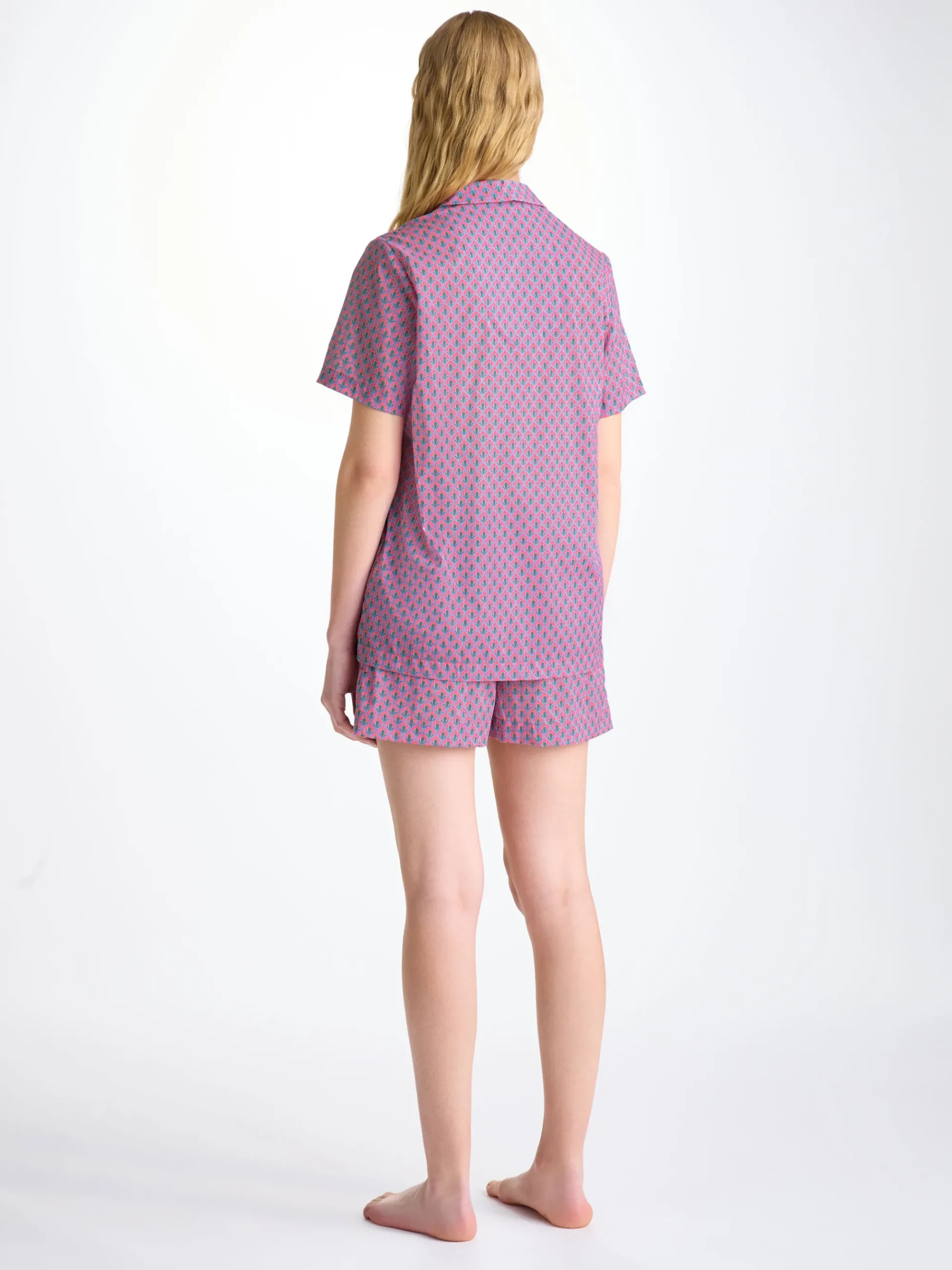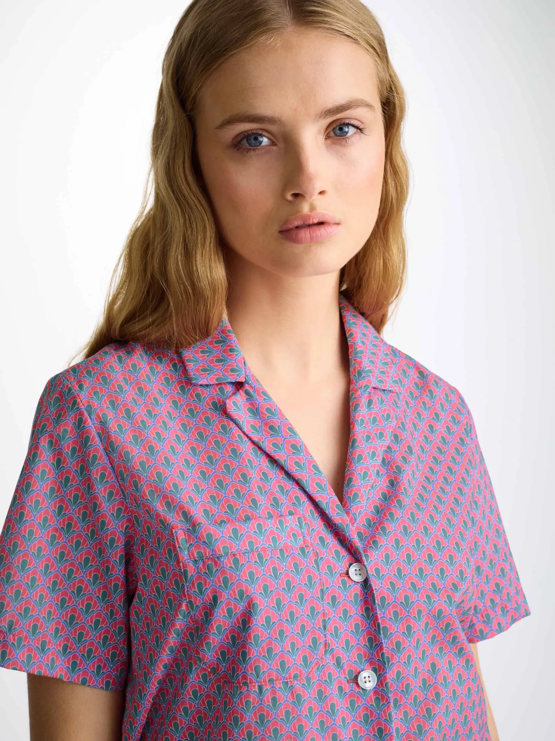This pyjama features a hand drawn scalloped leaf geometric print in flamingo pink.