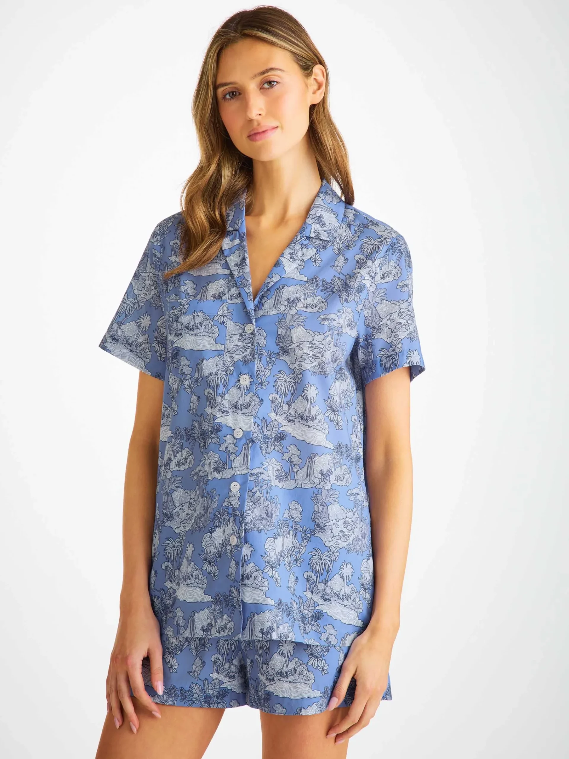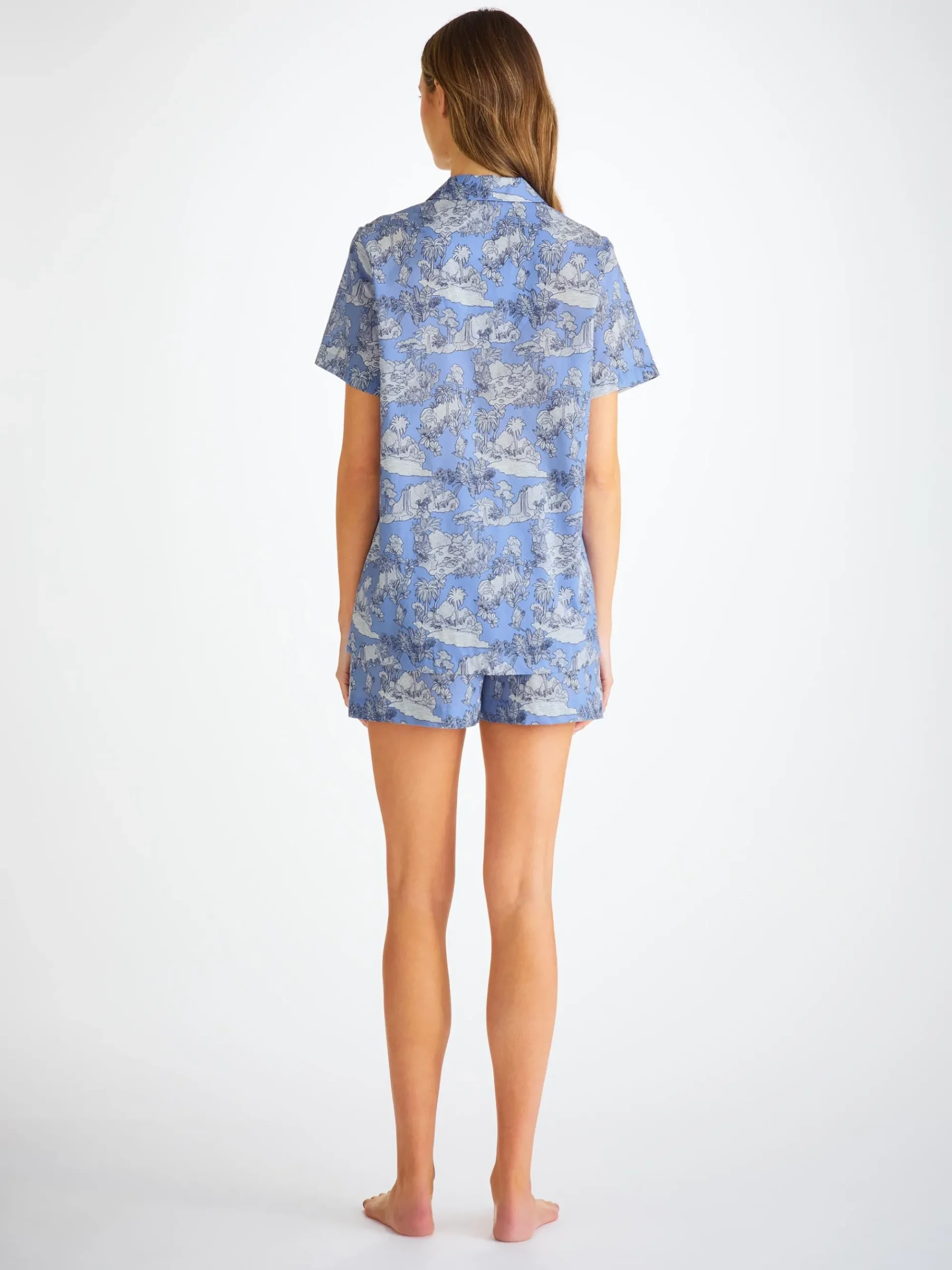 Cut with a flattering but relaxed shape, our women’s shortie pyjamas feature a short sleeve jacket top with a mitred corner chest pocket. The shorts have an elasticated and drawstring waist for practicality. The higher waist on the shorts creates a more natural fit and improved comfort, and the most important addition? Pockets!