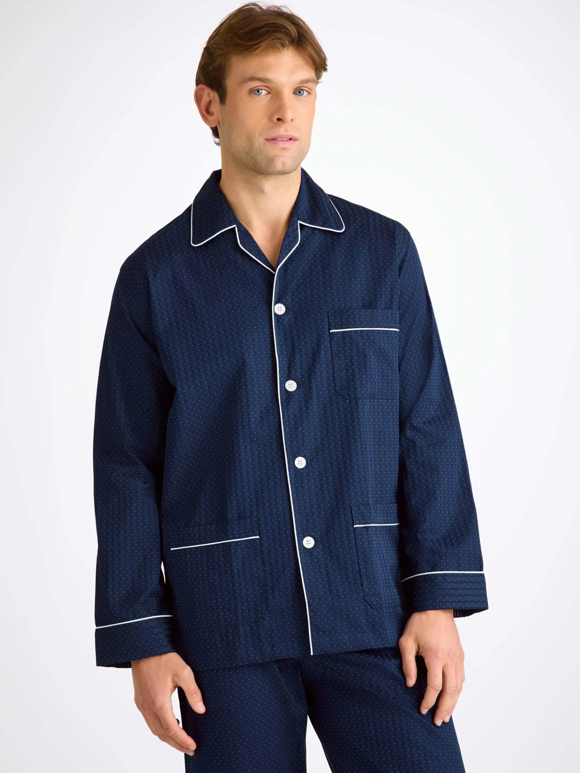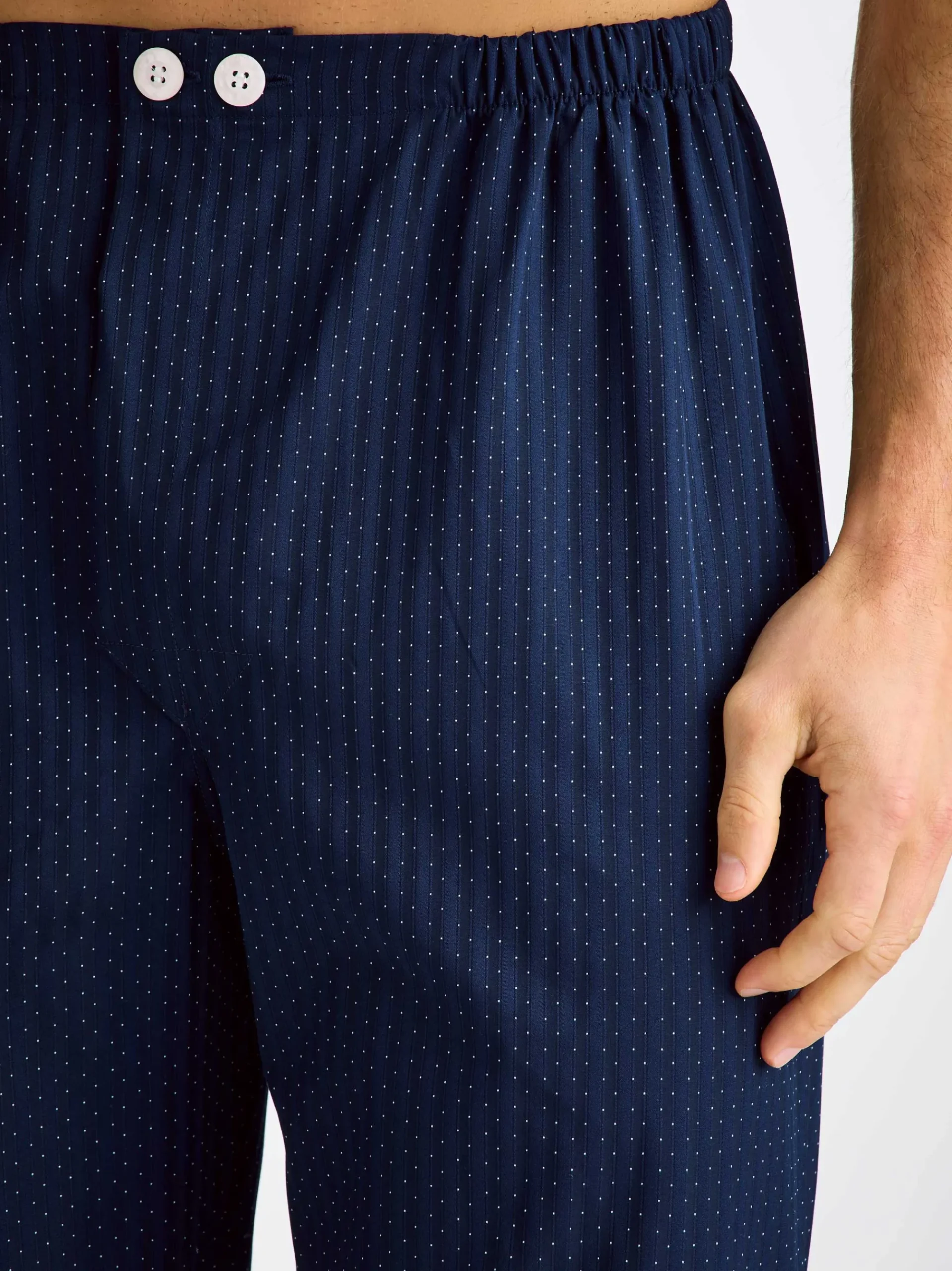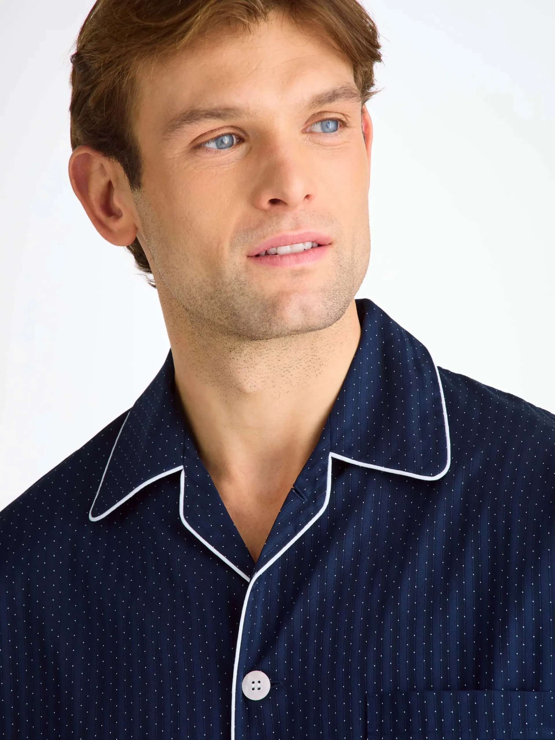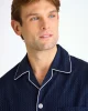 Featuring a three pocket pyjama top, classic collar, piped jacket and adjustable two-button waistband with open fly. Elasticated sides on the trousers mean the front and back are flat for your comfort.