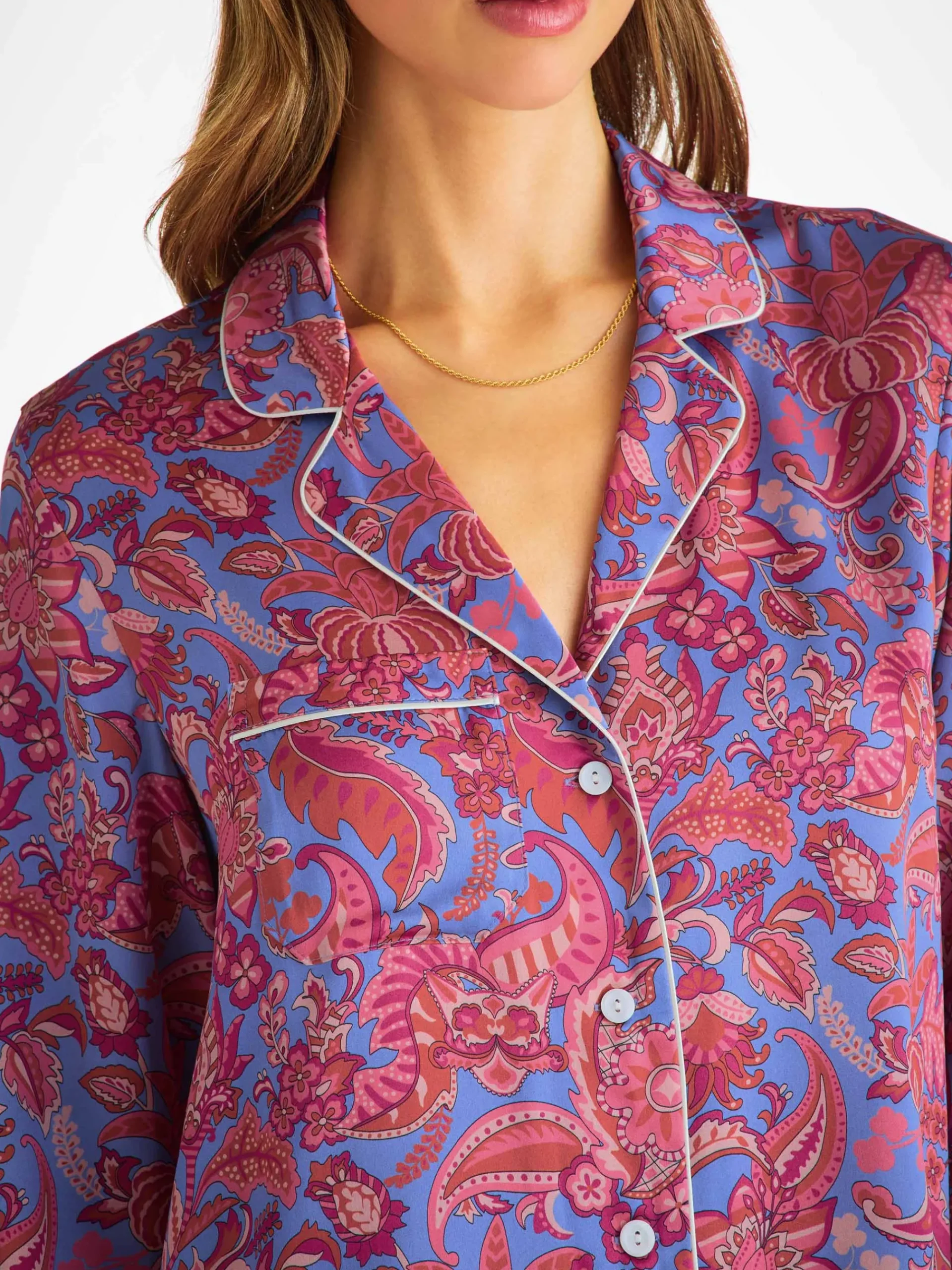 It’s the little things in life that make all the difference. That’s why we’ve obsessed over the details on this silk PJ. The jacket is fully piped in complementary ivory and the chest pocket has mitred corners. The trousers also have a matching flat silk drawstring and elasticated waist for comfort.