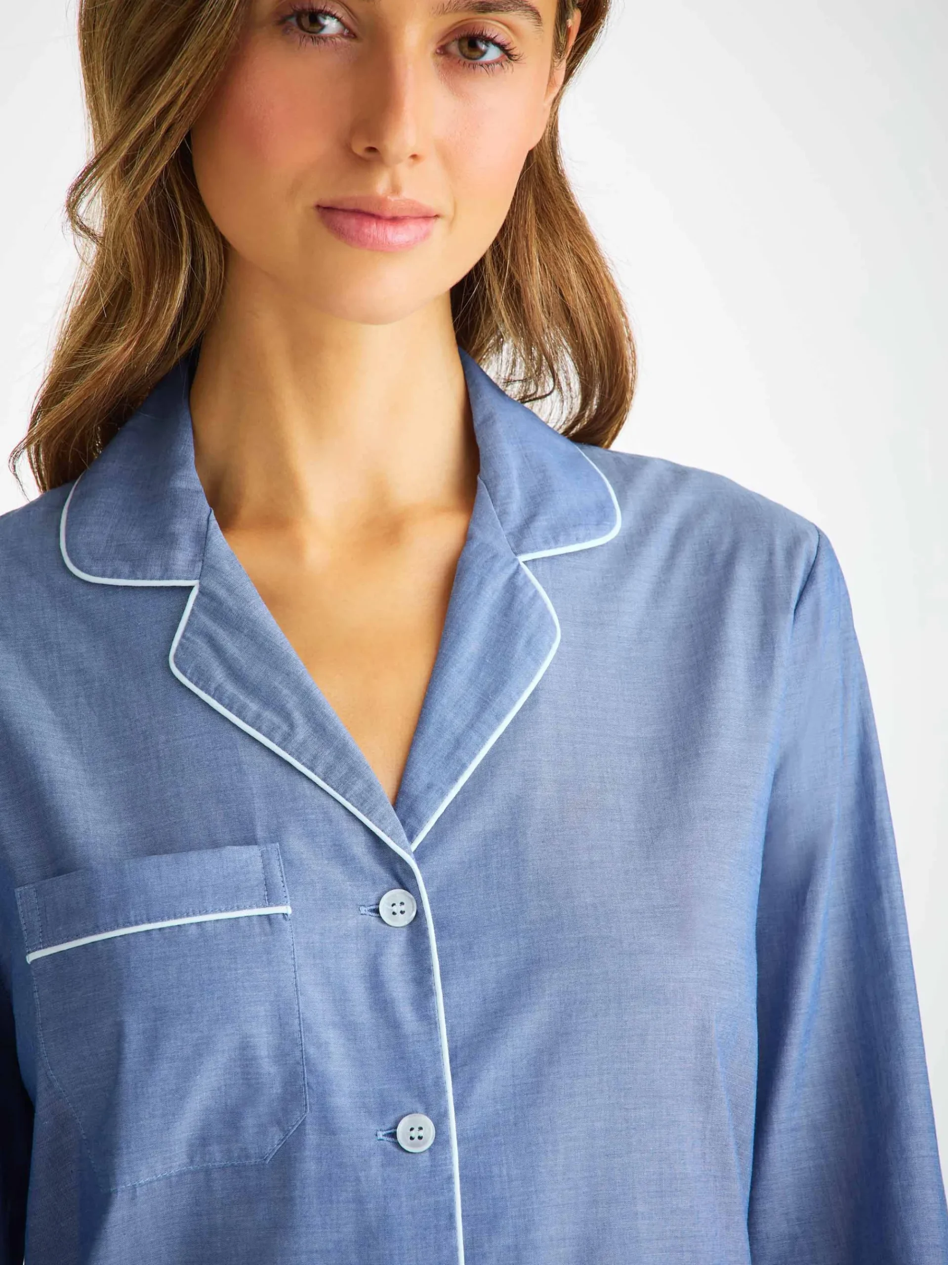 Designed for a flattering but comfortable shape, our Amalfi denim blue pyjamas will keep you looking great and feeling comfortable all year round.