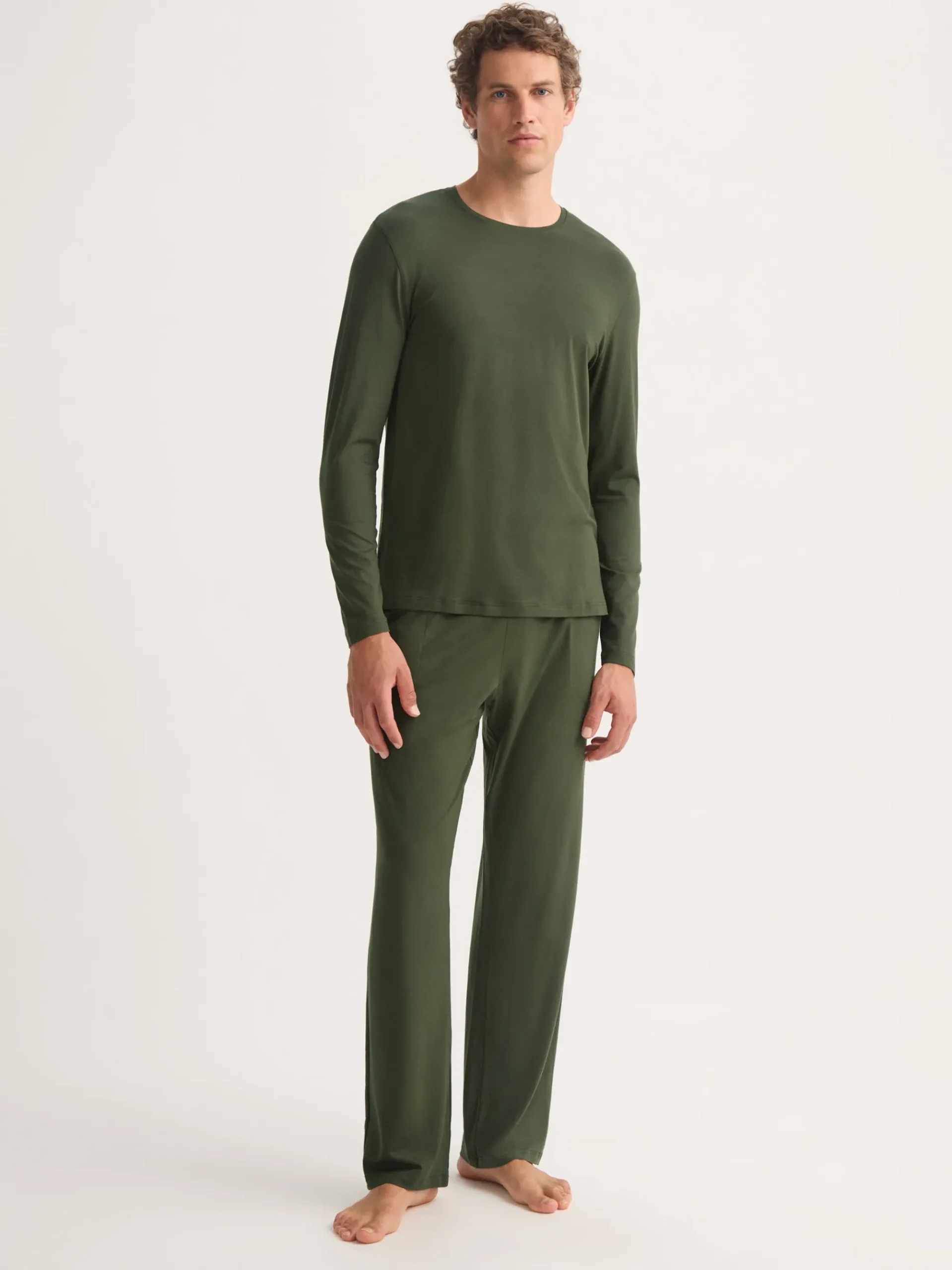 The men’s Basel long sleeve t-shirt in evergreen is the result of countless trials to create the perfect downtime essential. With its flattering yet comfortable fit, it’s ideal for sleeping, lounging or long-haul travel—an all-round staple you’ll wear on repeat.