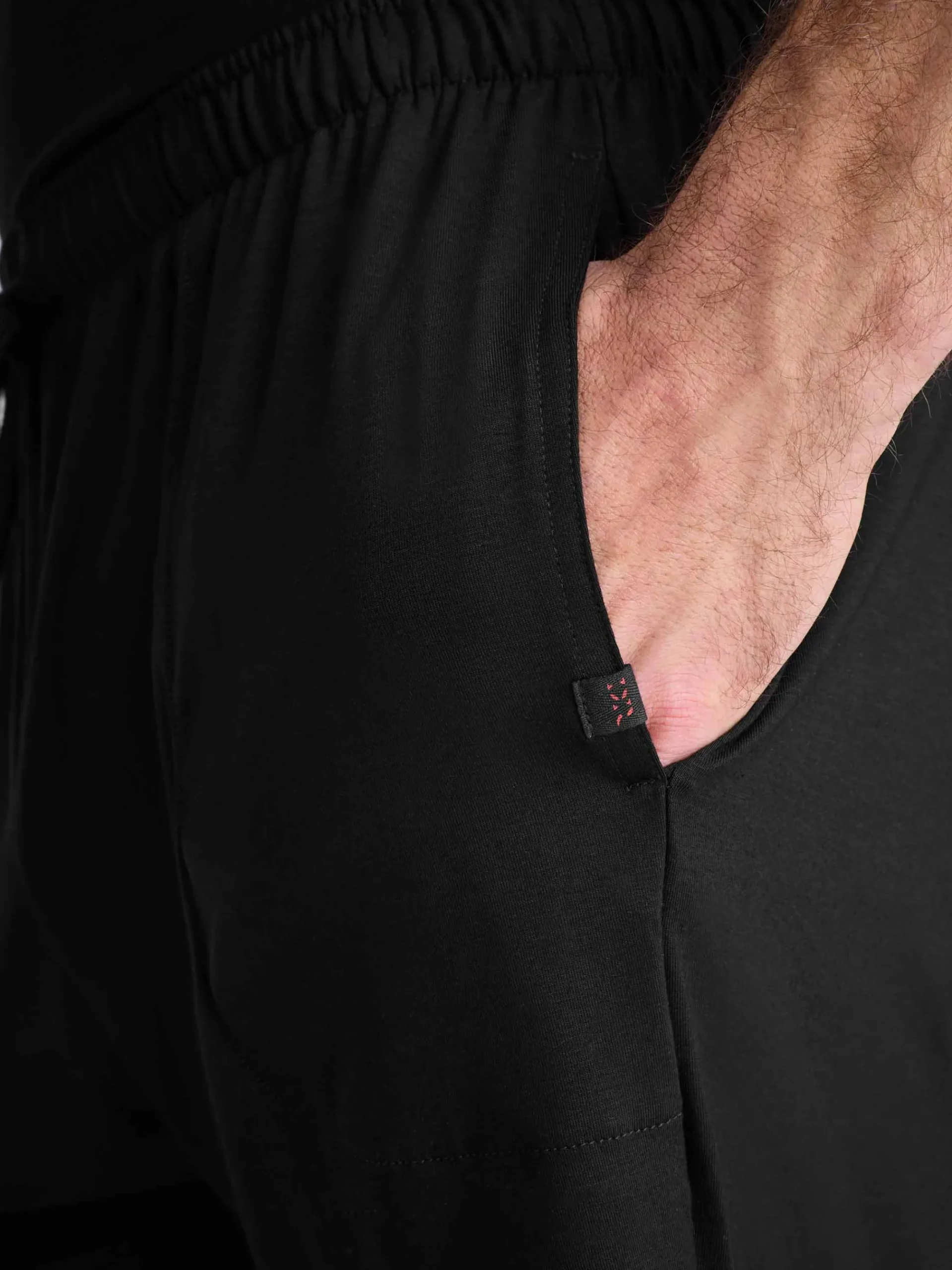 Our Basel jersey shorts in black are a testament to this and offer a combined elastic and tie waistband for the perfect fit. They also feature two front side pockets and a rear back pocket to keep your phone and essentials close while you’re lounging.