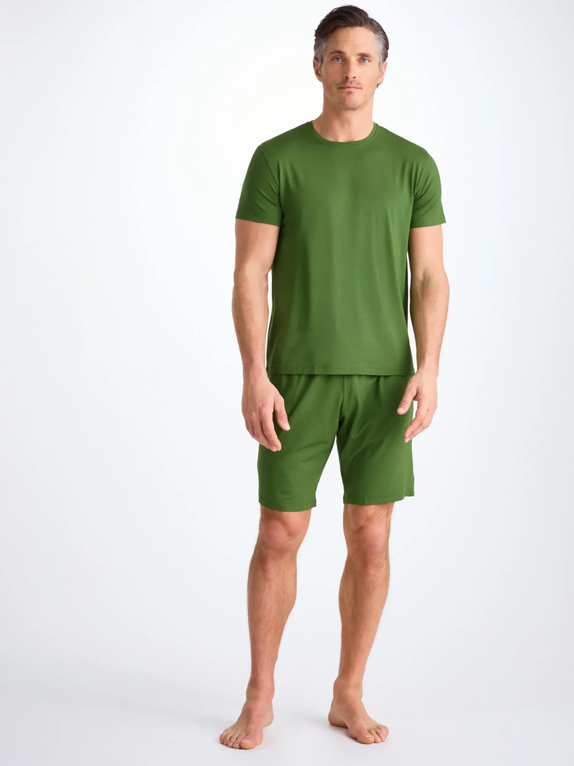 Featuring a combined elastic and tie waistband, our Basel leaf green jersey lounge shorts also feature two front side pockets and a rear back pocket to keep your phone and essentials close while you’re lounging. Both comfortable and stylish, we’ve elevated this loungewear short into a luxury essential for the modern man.
