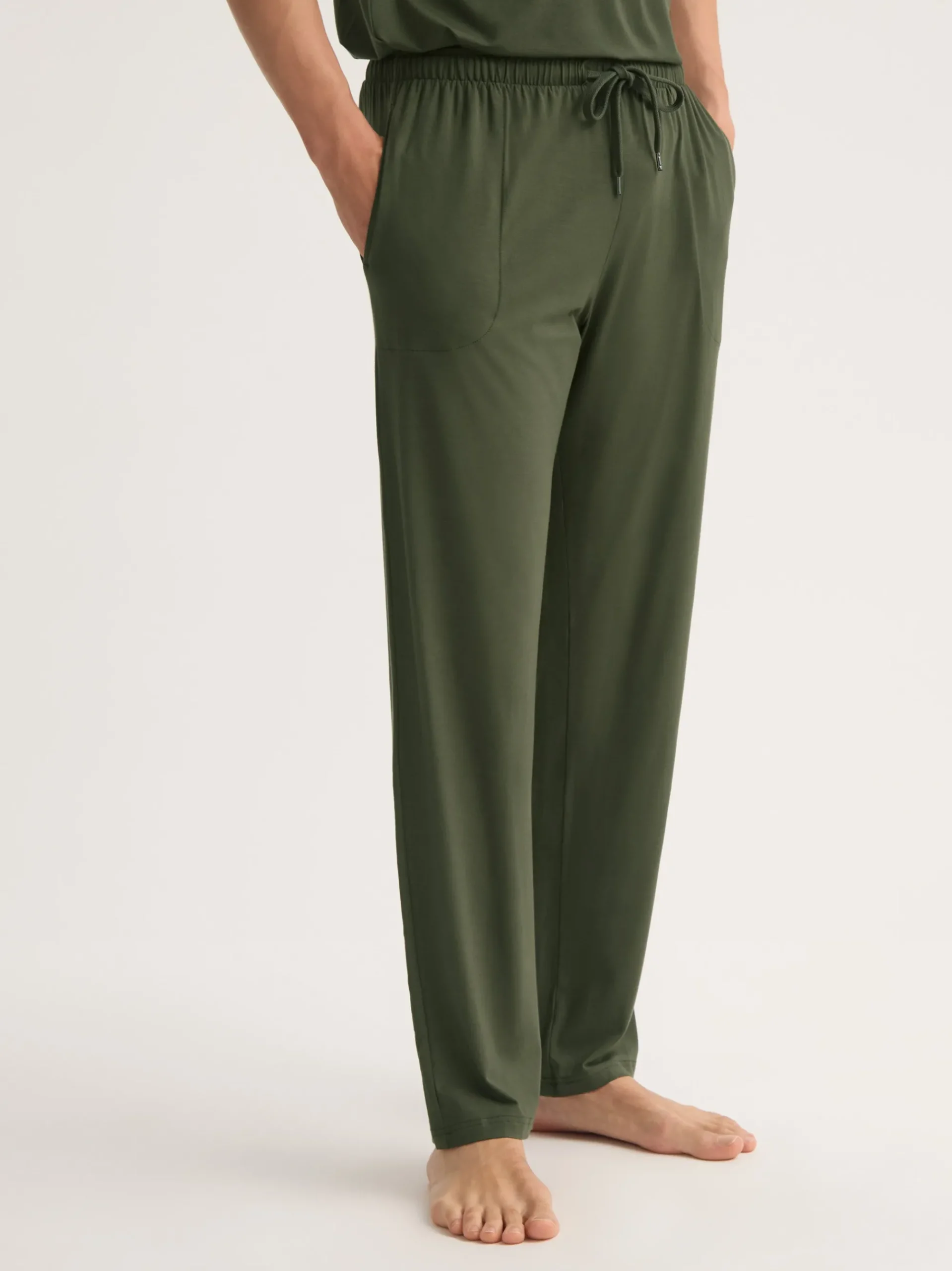 Crafted from our signature micro modal stretch, our men’s Basel lounge trousers in evergreen are designed for unmatched softness, breathability and durability. The fabric is naturally temperature-regulating, adapting to your body to keep you comfortable through every season.