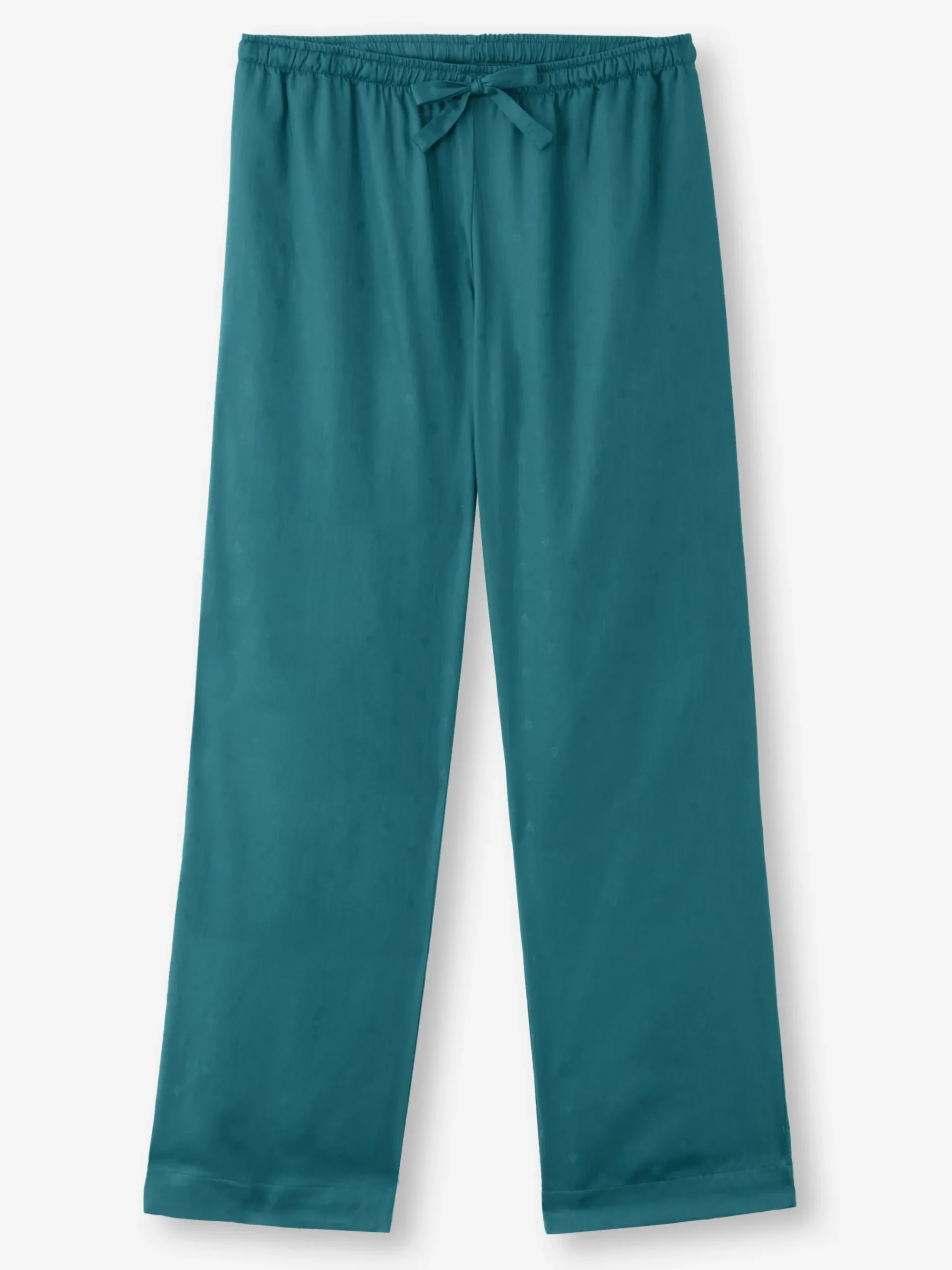 Our jungle green lounge trousers are designed with a relaxed and comfortable shape. Featuring a combined elastic and self-fabric tied waist for a comfortable fit and two inset side pockets to help keep your phone and other items close while lounging, you’ll definitely feel as great as you’ll look. Designed with a subtle jacquard paisley motif design.