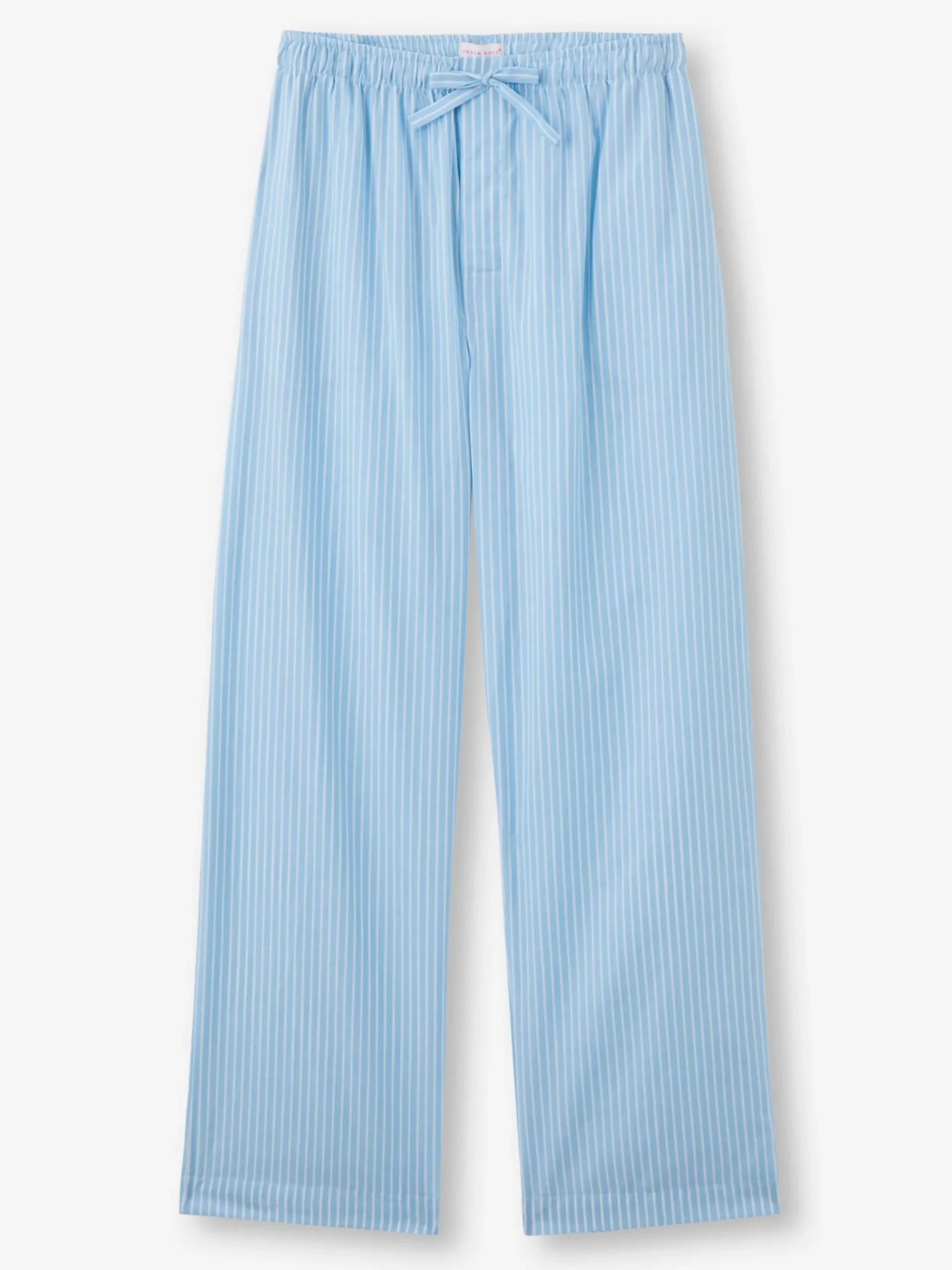 Add a layer of gentle warmth in the cold or stay cool in warmer conditions with our supremely soft blue and white stripe Amalfi lounge trousers.