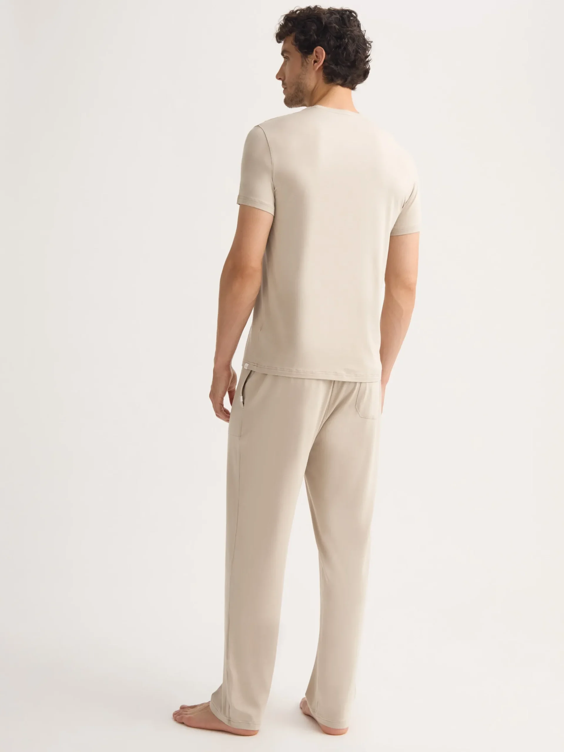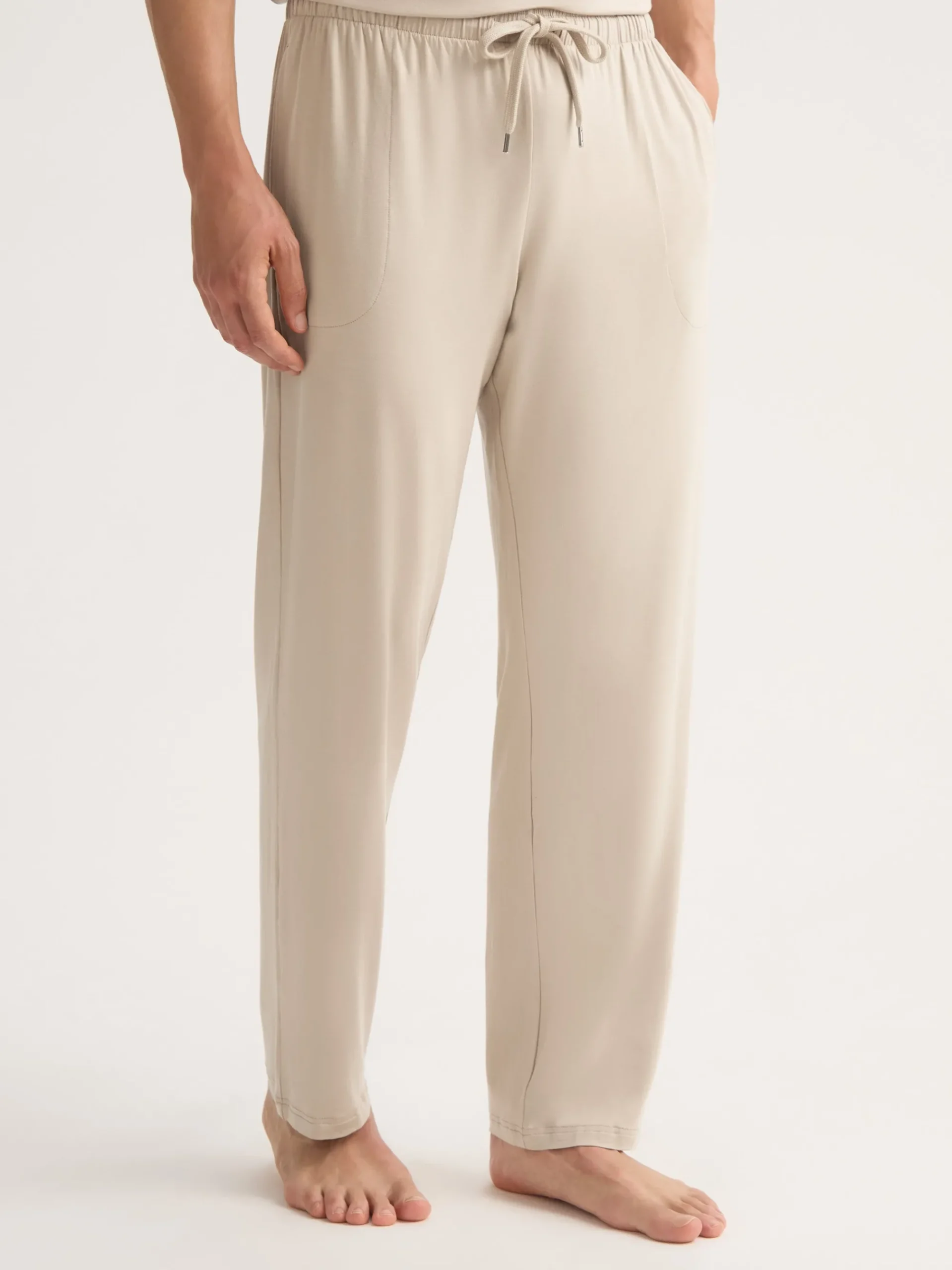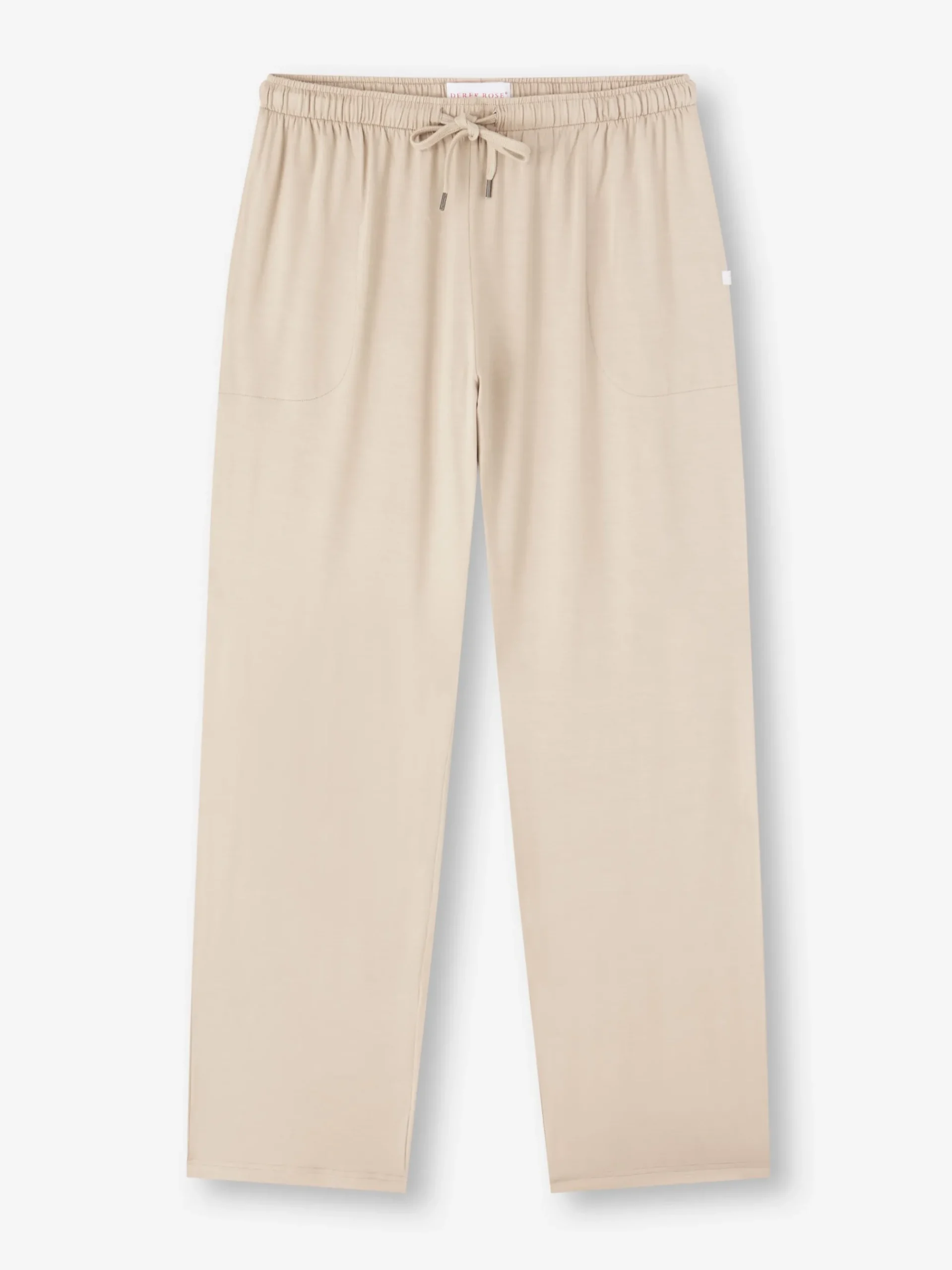 Crafted from our signature micro modal stretch, the men’s Basel lounge trousers in a neutral light stone are designed for unmatched softness, breathability and durability. The fabric is naturally temperature-regulating, adapting to your body to keep you comfortable through every season.