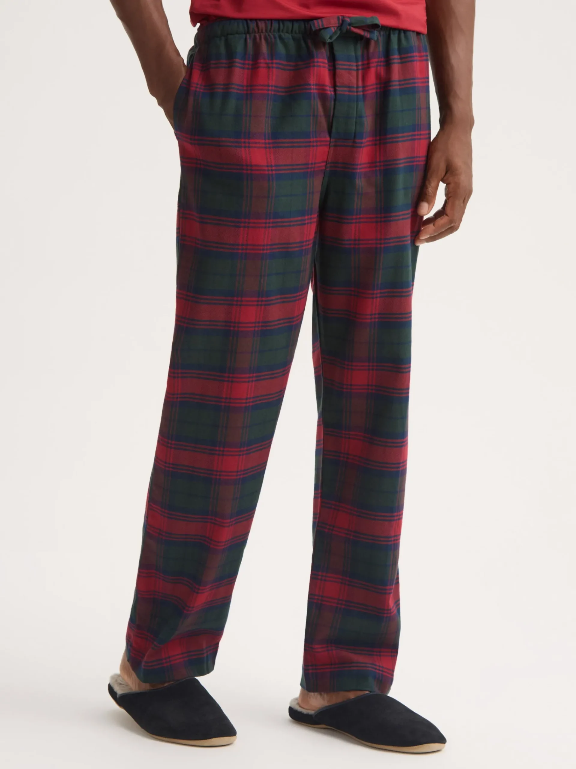 Designed and cut for a generous and relaxed fit, our men’s Kelburn lounge trousers feature a combined elastic and self-fabric tied waist for a comfortable fit with two inset side pockets and a rear patch pocket to help keep your phone and other items close while you’re lounging. A concealed magnetic fly also ensures practicality is not lost.