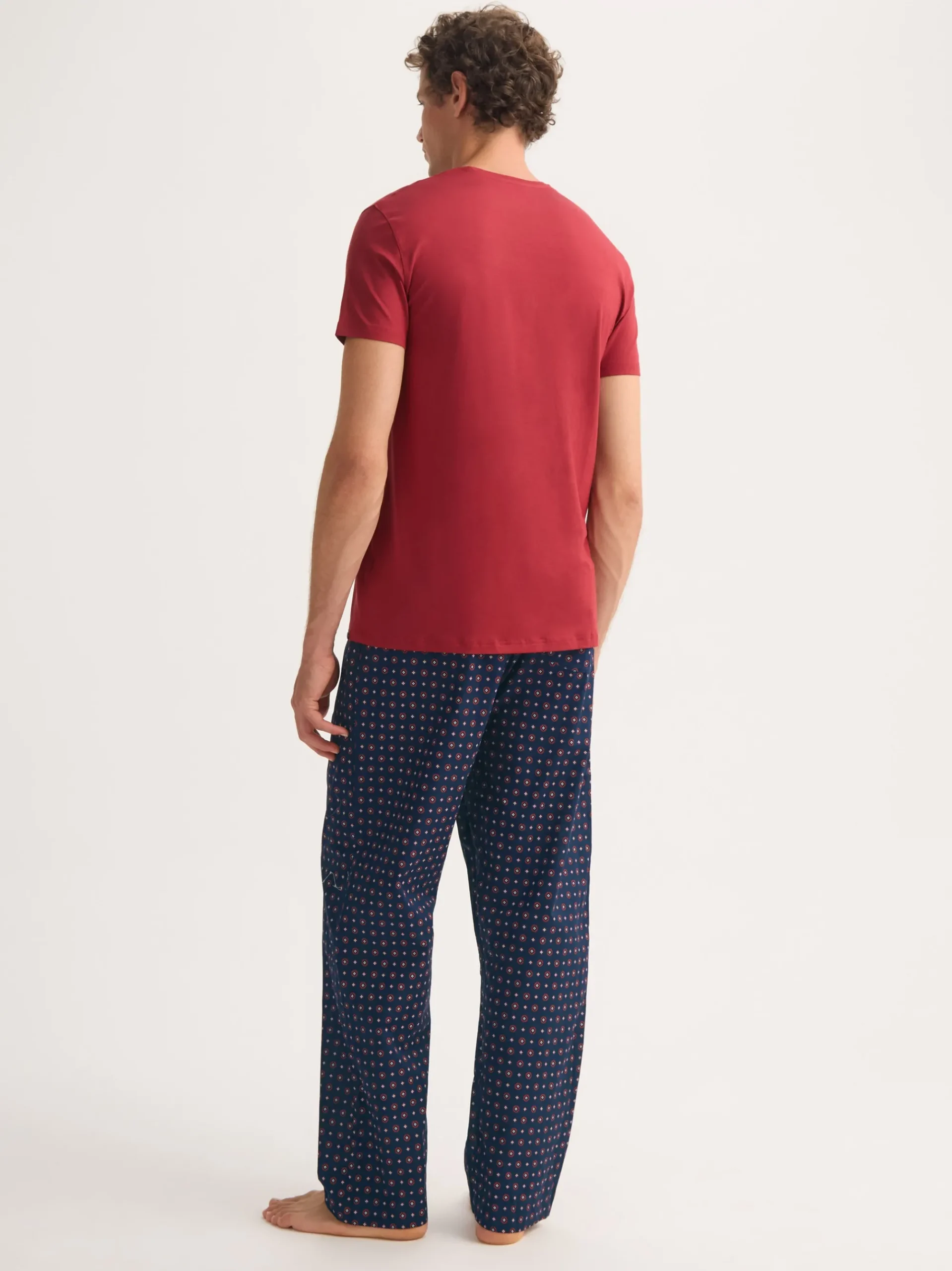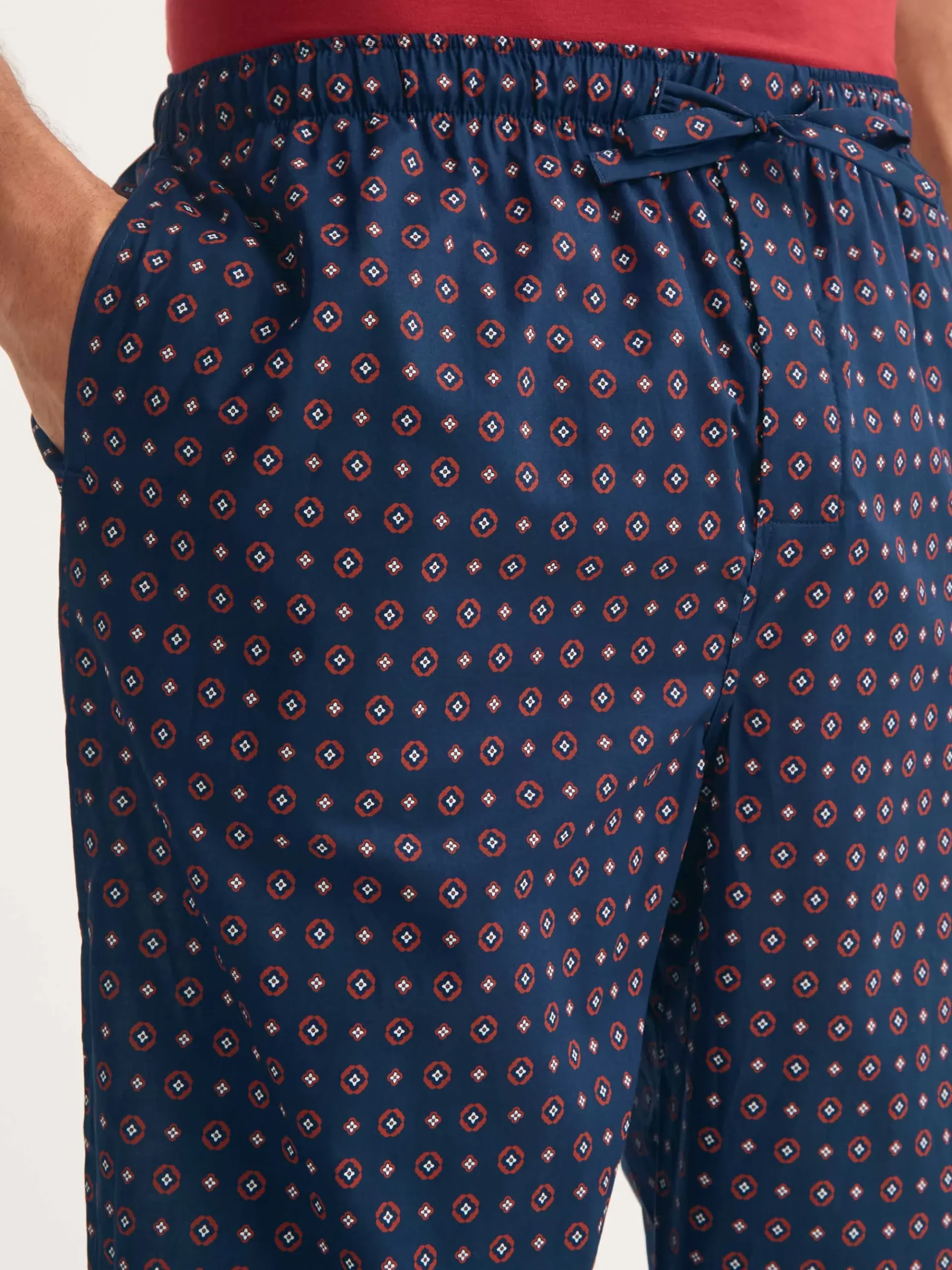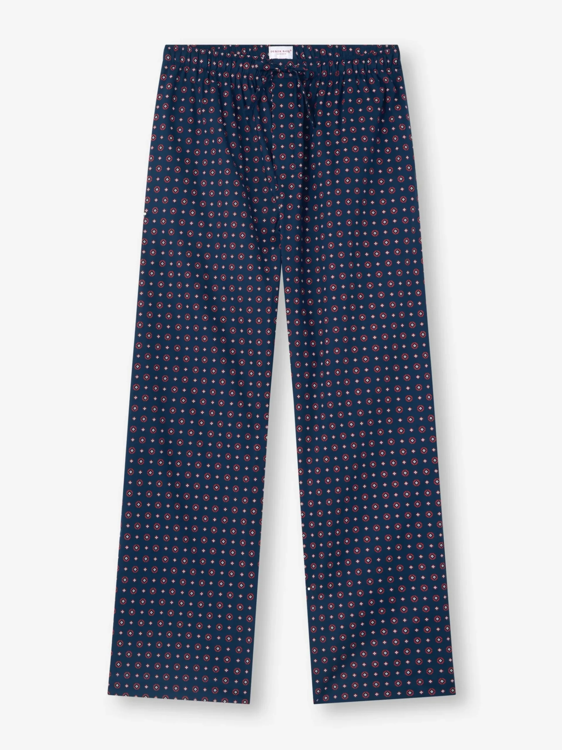Created to celebrate 100 years of Derek Rose, these men’s lounge trousers feature a hand-drawn foulard design with a subtle rose motif, coloured in timeless navy blue. The result is a refined yet relaxed style that brings heritage elegance to everyday loungewear.
