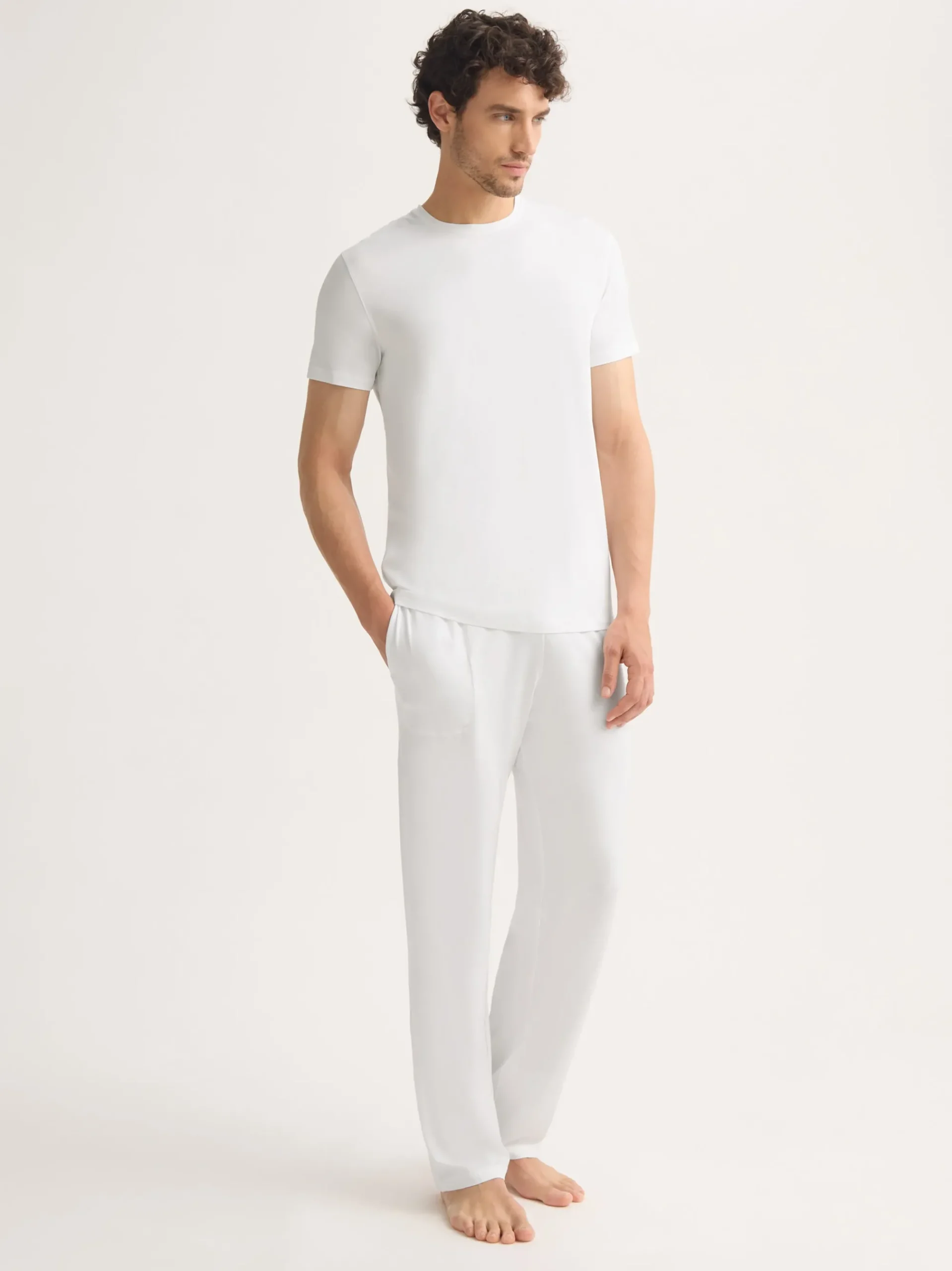 The ideal loungewear companion, the white trouser fastens with an elastic and tie waistband for a winning combination of comfort and flattering fit.
