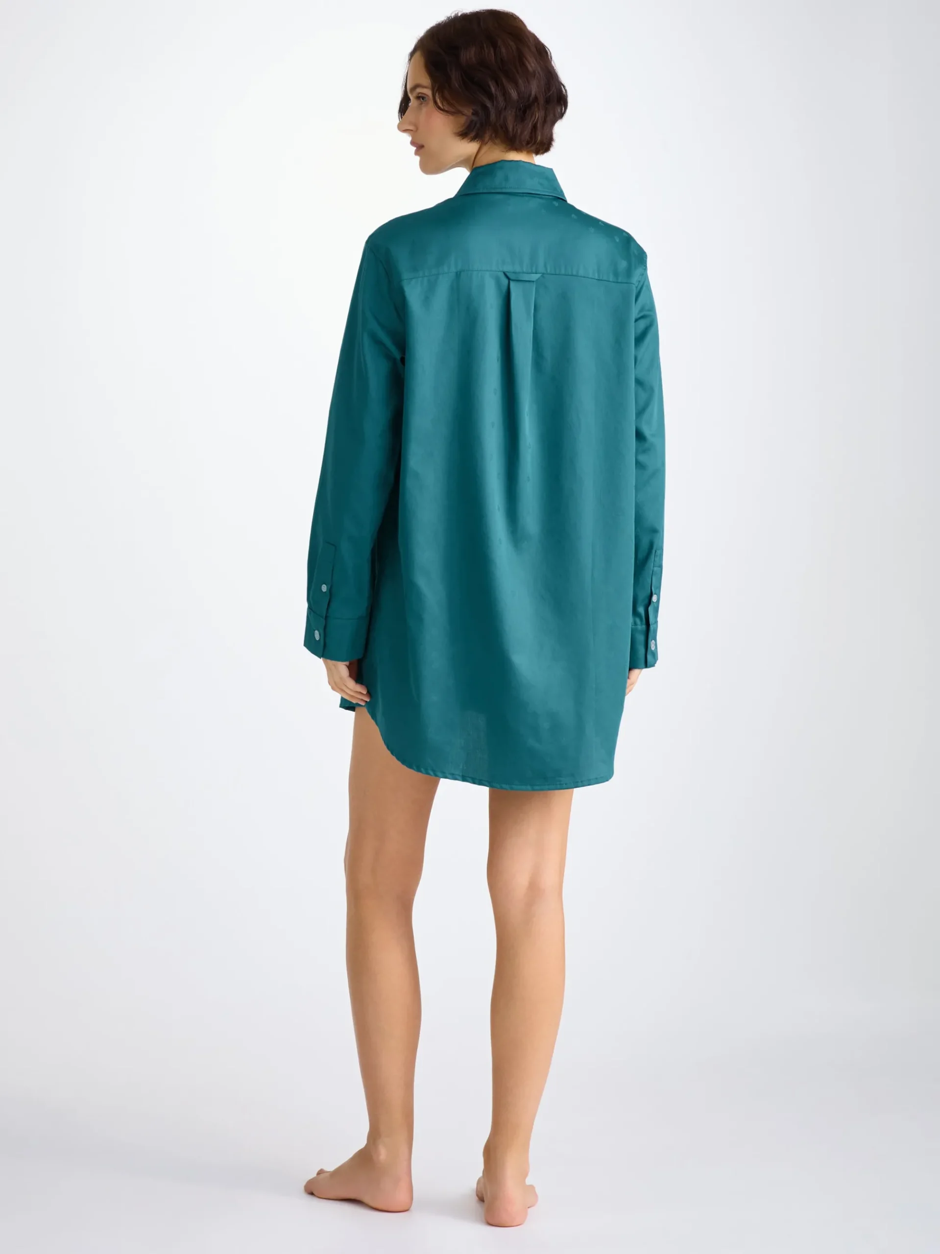 Seen here in jungle green with a jacquard paisley motif. This nightshirt has been constructed with a box pleat for ease of movement and simple curved hem with side vents for a perfect nights sleep.