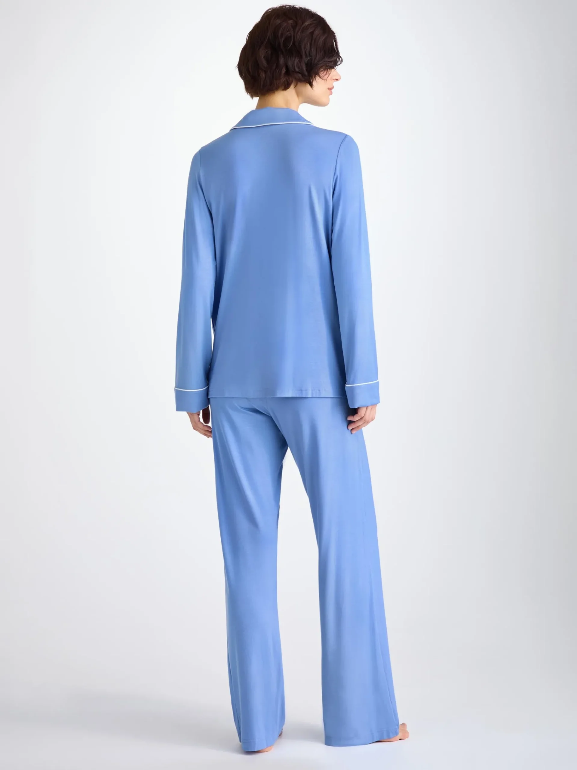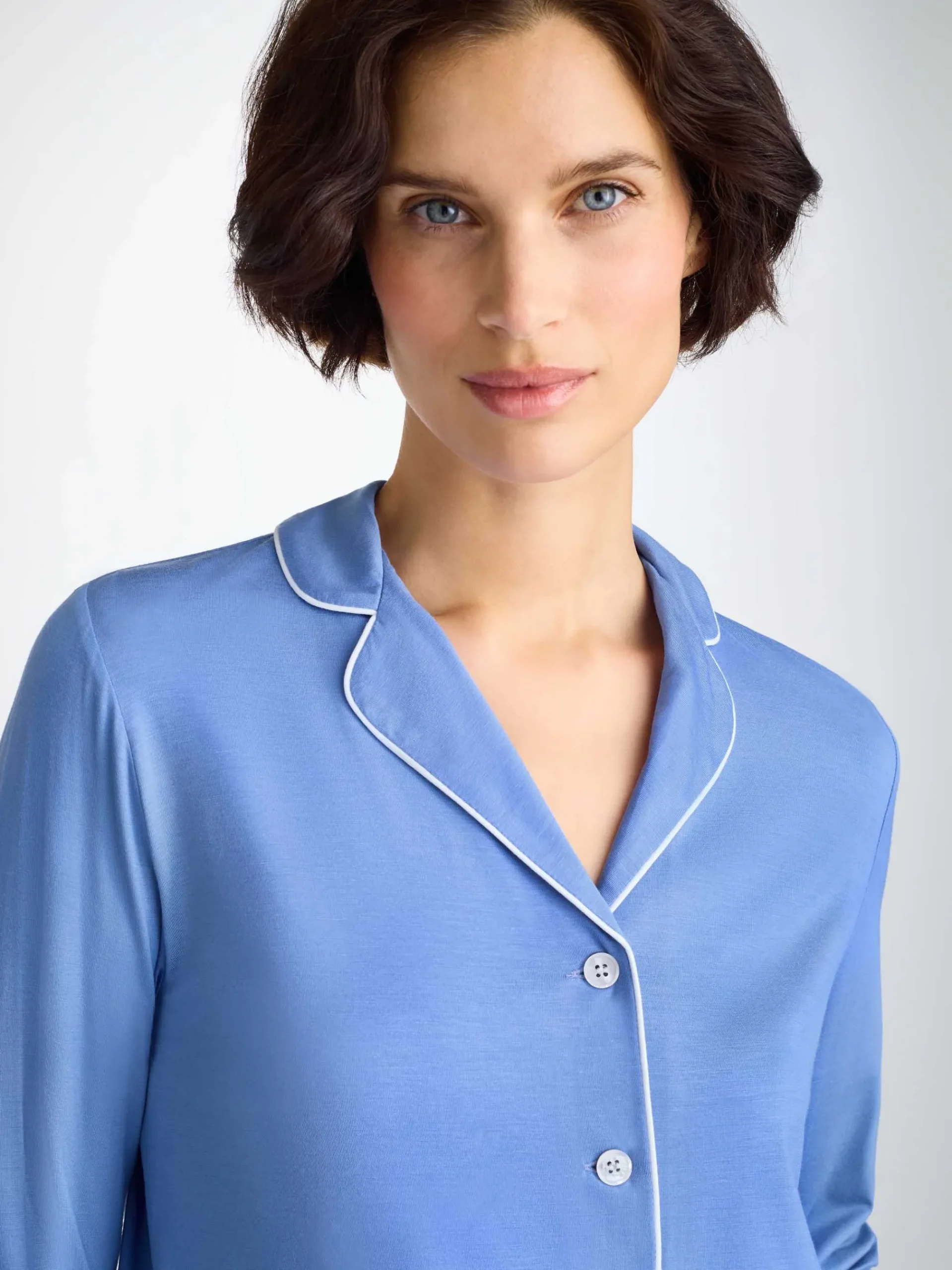 Combining a comfortable and flattering shape with intricate details, our Lara women’s pyjamas in cornflower blue will keep you looking great and feeling comfortable throughout the seasons.