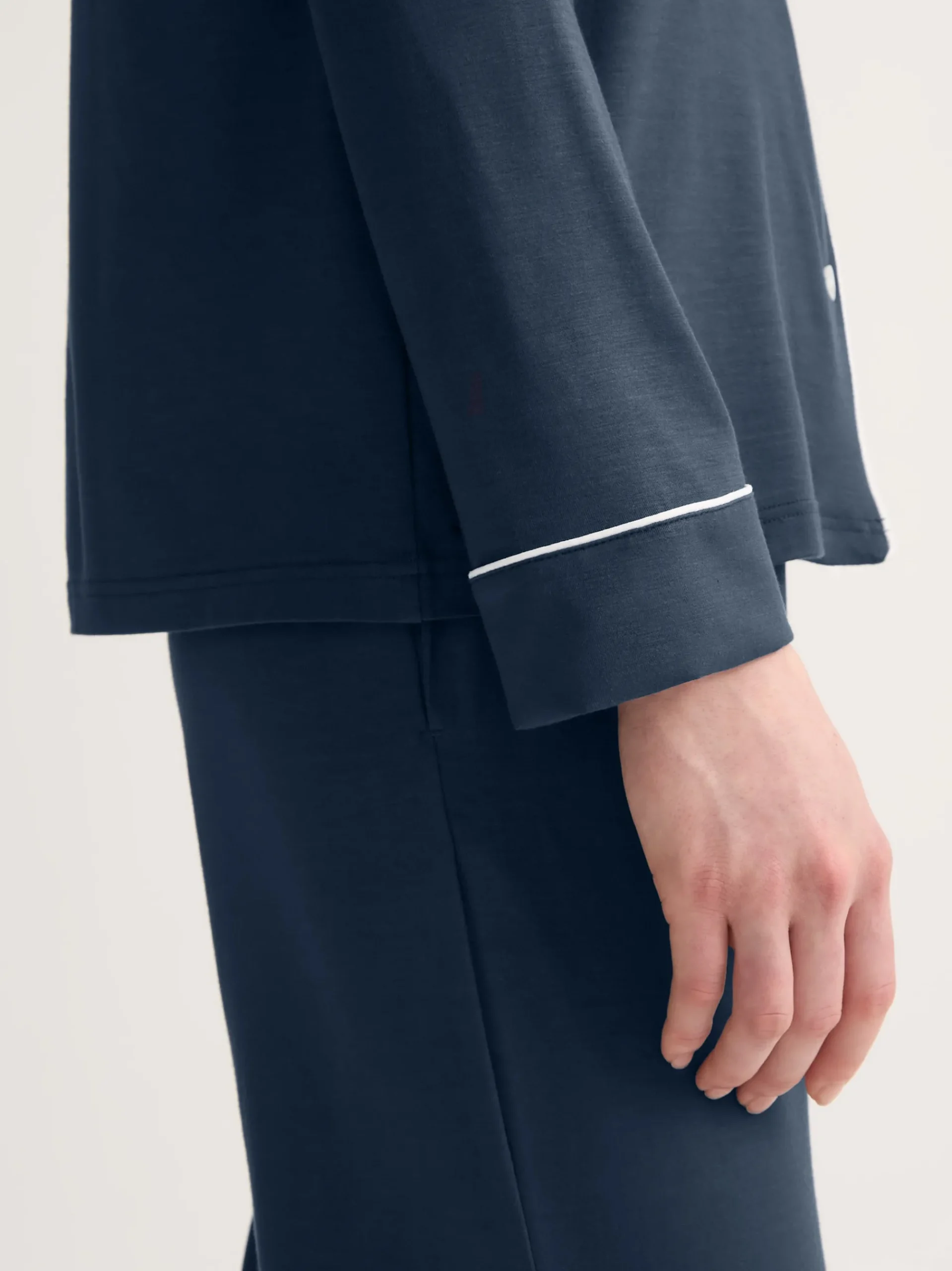 Not only is the Lara soft, but thermostatic properties in the micro modal fibres allow them to react to changes in temperature and regulate your body heat, making this pyjama perfect to sleep in.
