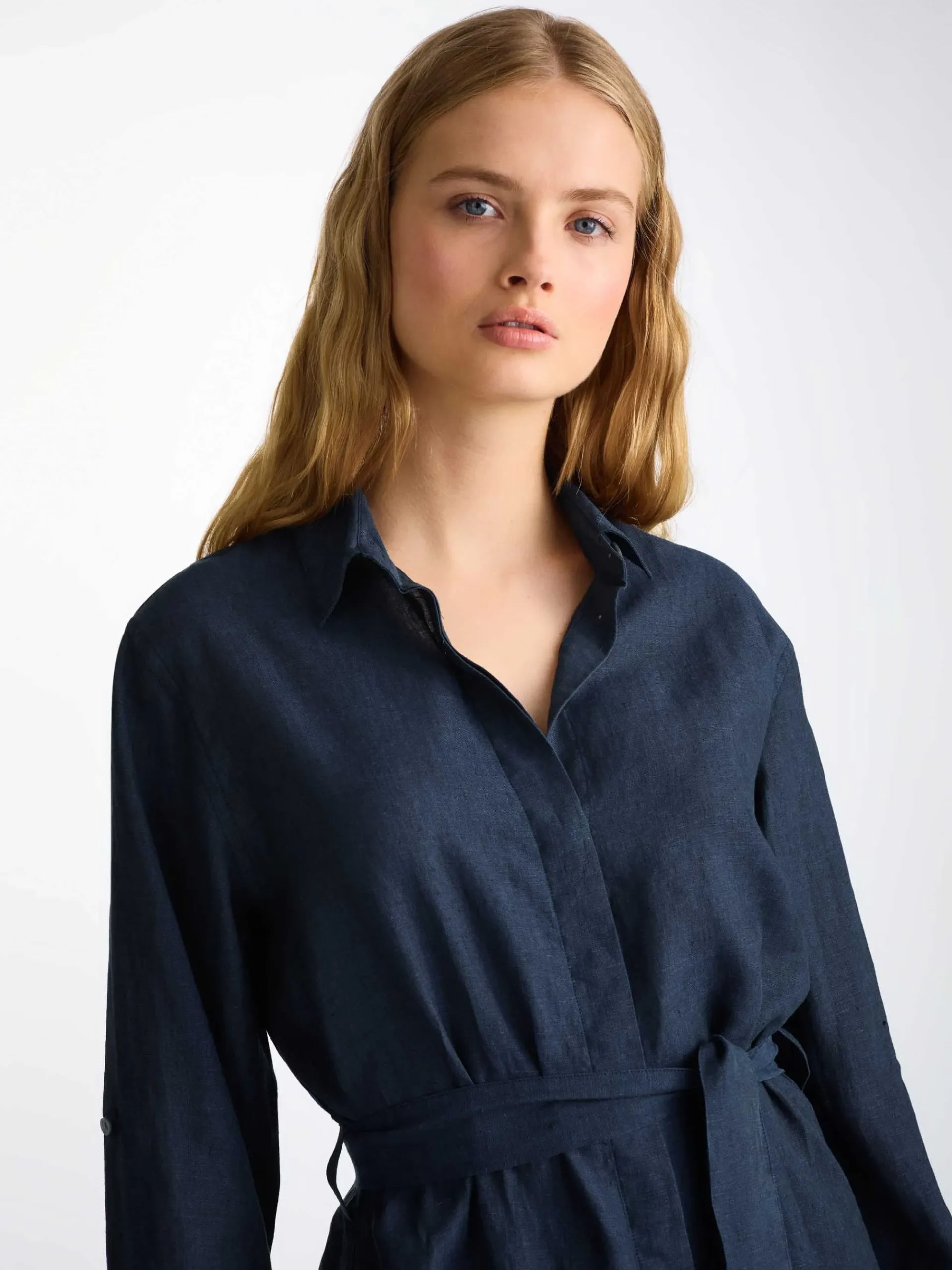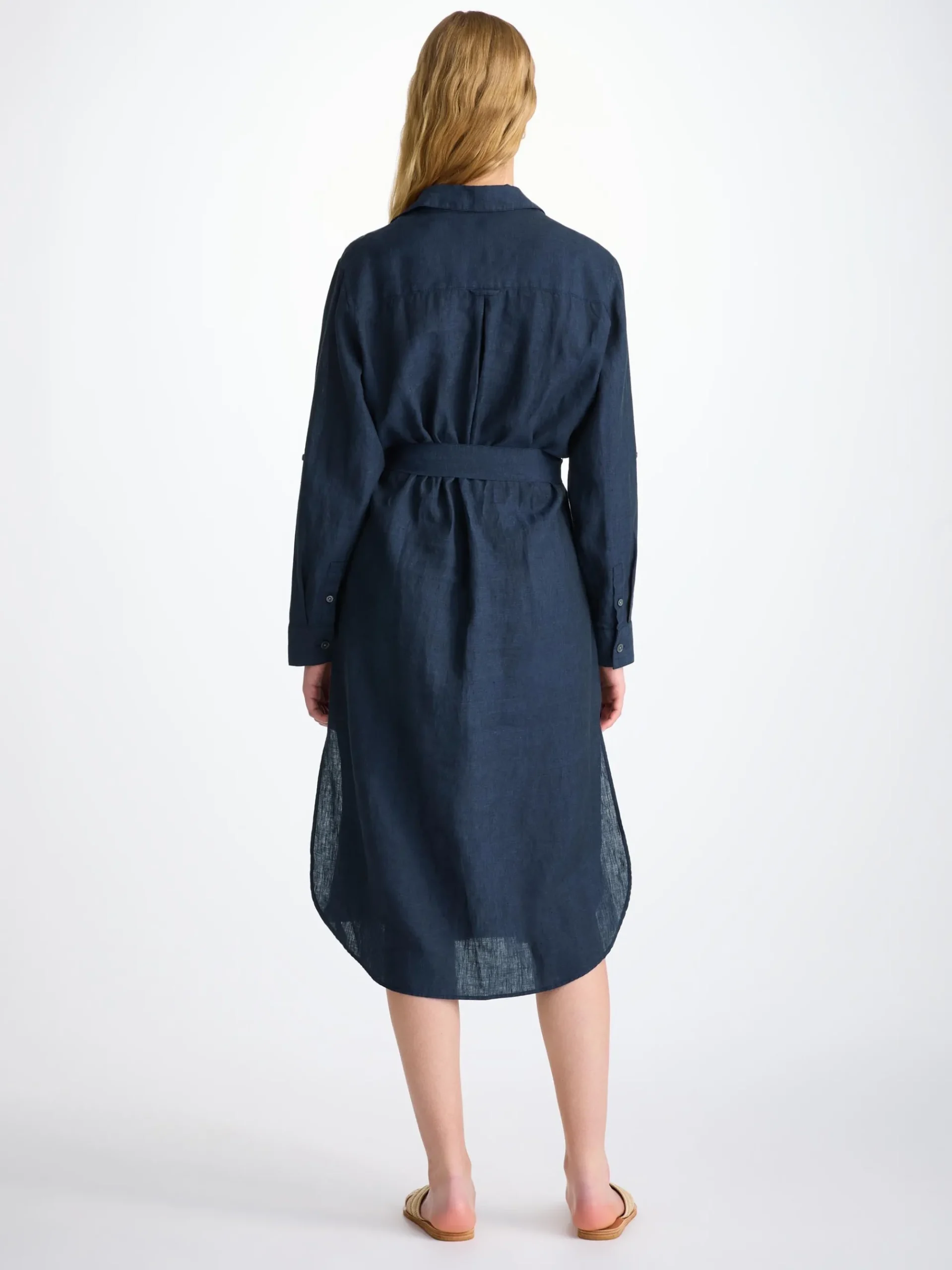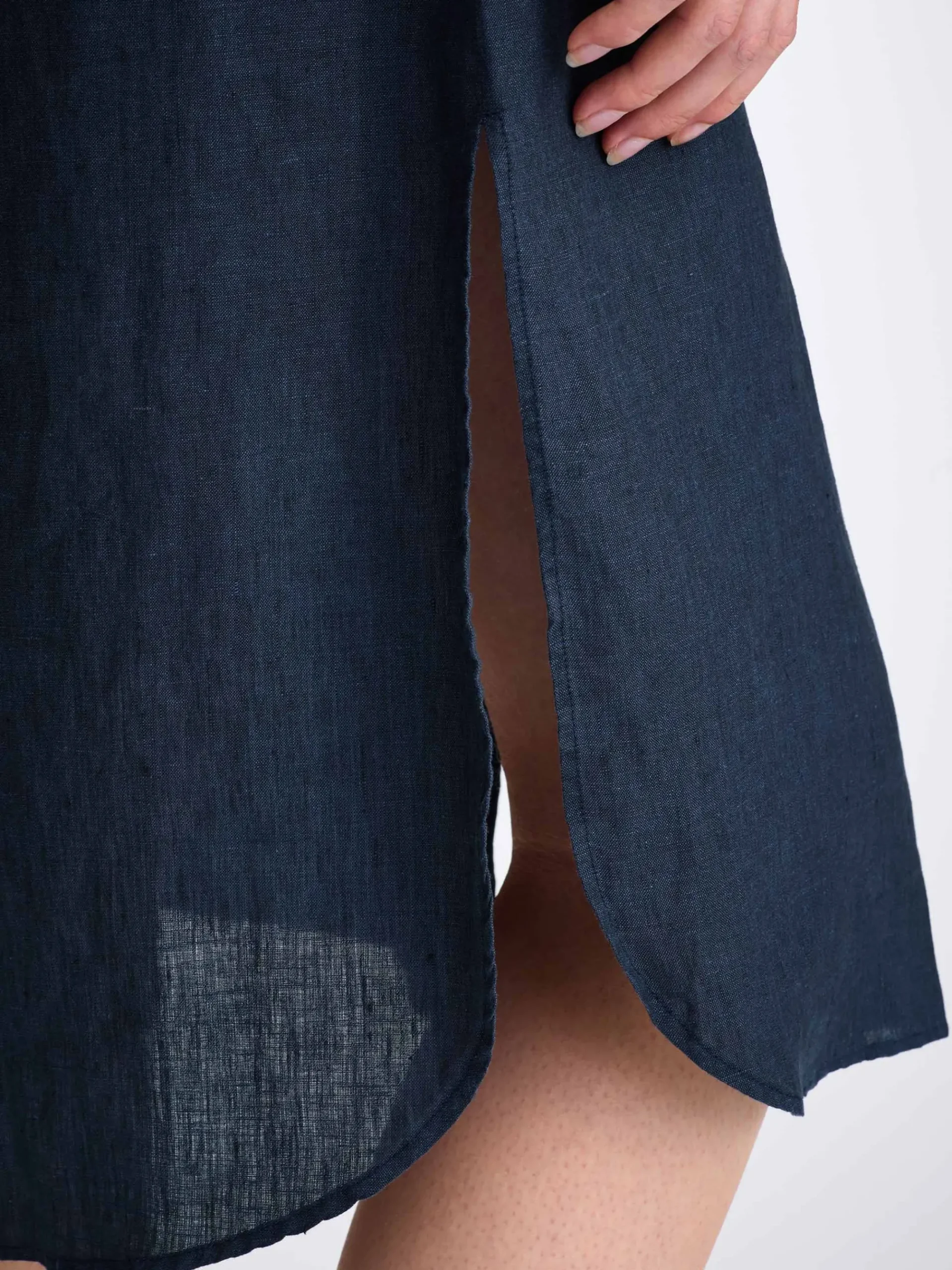 Your new vacation wardrobe essential. Our Sicily navy 100% line dress has been created with natural fibres that gets softer and more durable over time.
