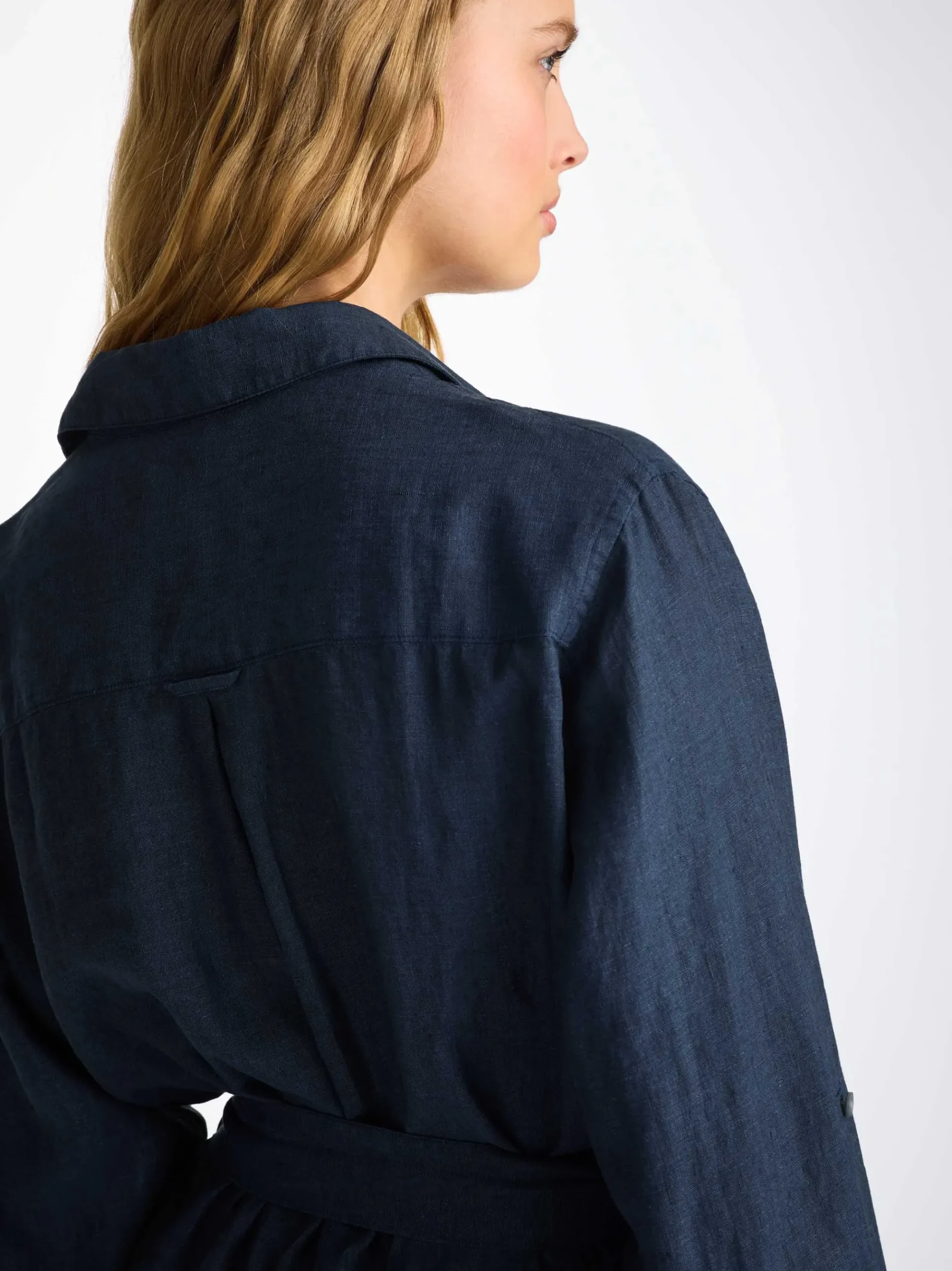 Lightweight and breathable, this dress has been created with a relaxed fit, button fastenings and a tie waist belt. Opt to role the sleeves and secure with tab buttons for an informal look.