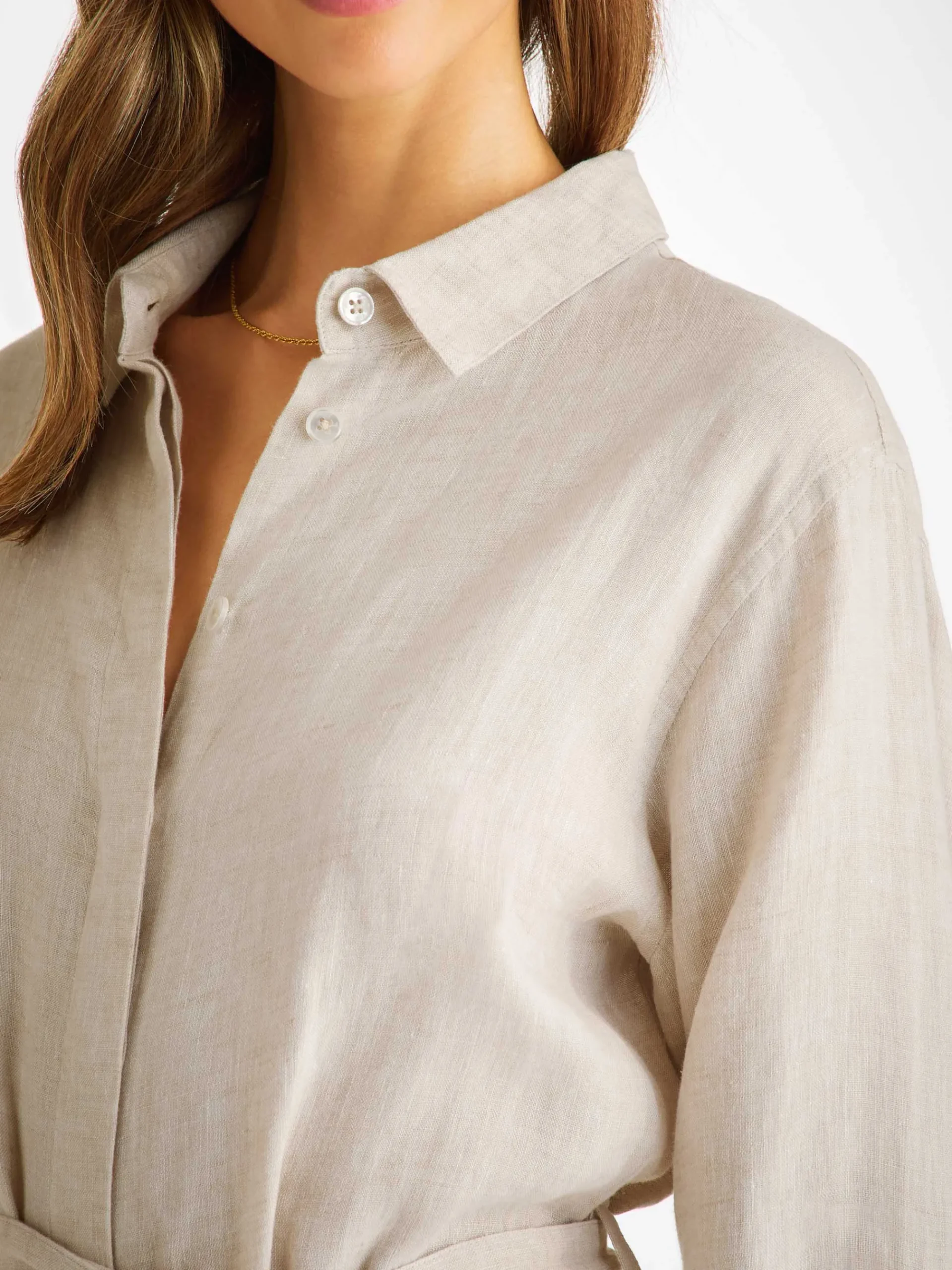 Your new vacation wardrobe essential. Our Sicily sand 100% line dress has been created with natural fibres that gets softer and more durable over time.