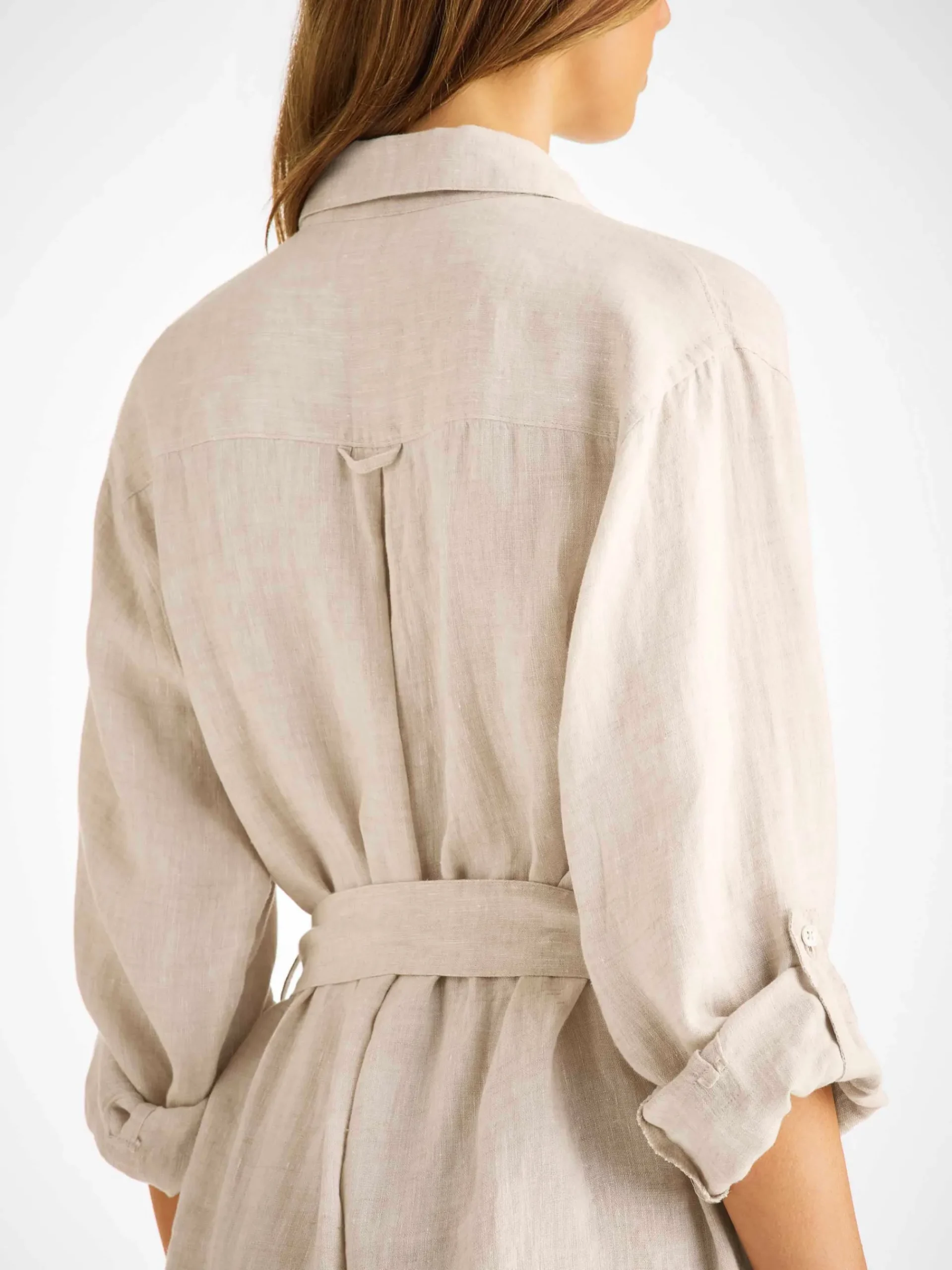 Complete with a curved back yoke and a hanger loop in the back, the Sicily linen dress in naturally thermo-regulating, made for summer strolls or dining out.