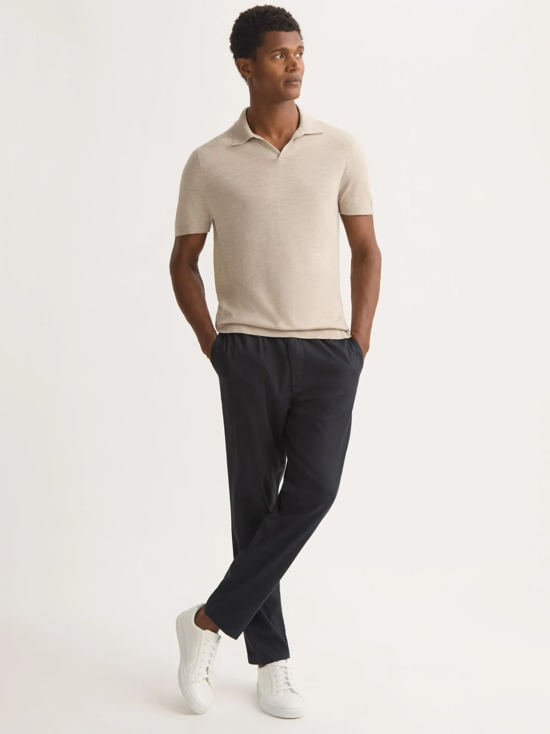 Designed for relaxed refinement, the Orson Merino Wool Polo offers a modern take on a timeless essential. Crafted from our finest 100% merino wool, this buttonless short-sleeved polo delivers effortless comfort, breathability and a clean, contemporary look—perfect for layering or wearing on its own.